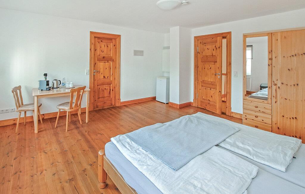 Idyllisk beliggende på den tilstødende herregårdspark i OT Friedrichsfelde, kun omkring 10 minutters gang fra Müritz National Park, er der 4 gæsteværelser til i alt 7 voksne og 1-2 babyer på øverste etage af den gamle herregård. og en restaurant med morgenmadsmuligheder i stueetagen (mod betaling) og onsdag til søndag restaurantservice med regionale, hjemmelavede retter og hjemmebagte kager (kl. 11.00 - 20.00) Schliemann-museet med den berømte trojanske hest er kun ca. 600 m, en restaurant ca. 1 km og et skønt badeområde ved Mühlensee ca. 5 km væk. Butikker kan findes i Möllenhagen (6 km) eller i Penzlin (10 km). Den populære cykelrute Berlin-København går direkte gennem byen. Det centralt opvarmede, ikke-ryger dobbeltværelse blev renoveret i 2022 og kan nås via en separat indgang (trappe). Der er mulighed for en ekstra seng til 1 baby. Barneseng på forespørgsel. Der er et lille spisebord med stole, køleskab, elkedel, kapselkaffemaskine, fladskærms-tv og badeværelse med brus/toilet. Der er tilstrækkelige parkeringspladser, cykelrum, legeplads med informationstavle om nationalparken, barneseng efter anmodning og gratis WiFi. Rejseprisen inkluderer slutrengøring, sengelinned, håndklæder og alle ekstra omkostninger. Betales på stedet: Morgenmad (hvis det ønskes) 10 EUR/person. Kæledyr er ikke tilladt. Ankershagen er primært knyttet til den berømte arkæolog og Troja-opdager Heinrich Schliemann, der tilbragte sin barndom i præstegården overfor kirken. Det fredede hus fra 1700-tallet rummer nu et museum. Udstillingernes højdepunkt er en stor model af den trojanske hest. Samtidig betragtes Ankershagen også som porten til Müritz Nationalpark, som med sine enorme skovkomplekser, mange små søer, enge og hede er en af de vigtigste levesteder for sjældne dyr og planter. Besøgende kan selv udforske området ved hjælp af det meget veludviklede netværk af cykel- og vandrestier. Guidede udflugter er tilgængelige for dyreliv og fuglevisning. Talrige observationstårne blev skabt til dette formål. I selve byen er der et informationssted med udstillinger, cykeludlejning og en café. Havelquellseen-området, som er særligt populært blandt padlere, begynder kun omkring 2 km væk. Turistcentret i Mecklenburg Lake District, klimakurstedet Waren an der Müritz, ligger cirka 22 km væk.