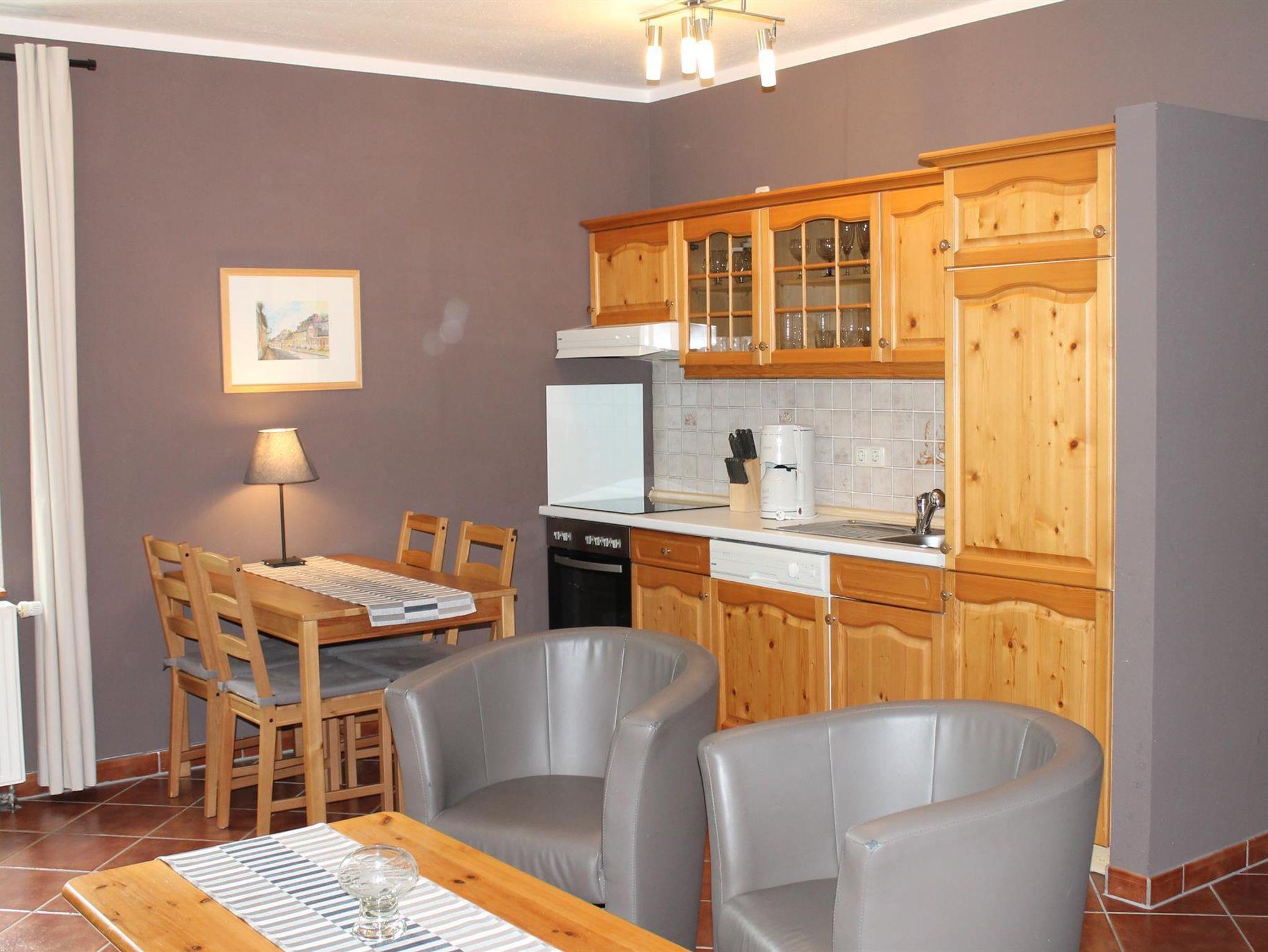 - Belegung von 1-4 Personen, 1 separates Schlafzimmer mit Boxspring- Doppelbett, großzügiger offener Wohnbereich mit Küchenzeile komplett ausgestattet mit Ceranherd mit Backofen, Spülmaschine, Kaffeemaschine, Toaster, Wasserkocher, Kühlschrank, einem Essplatz für bis 4 Personen, optional Schlafcouch 2,00m x1,65m mit Topperauflage, Flat-TV, neues Bad (2021) mit Dusche und WC, Kosmetikspiegel und Haarföhn