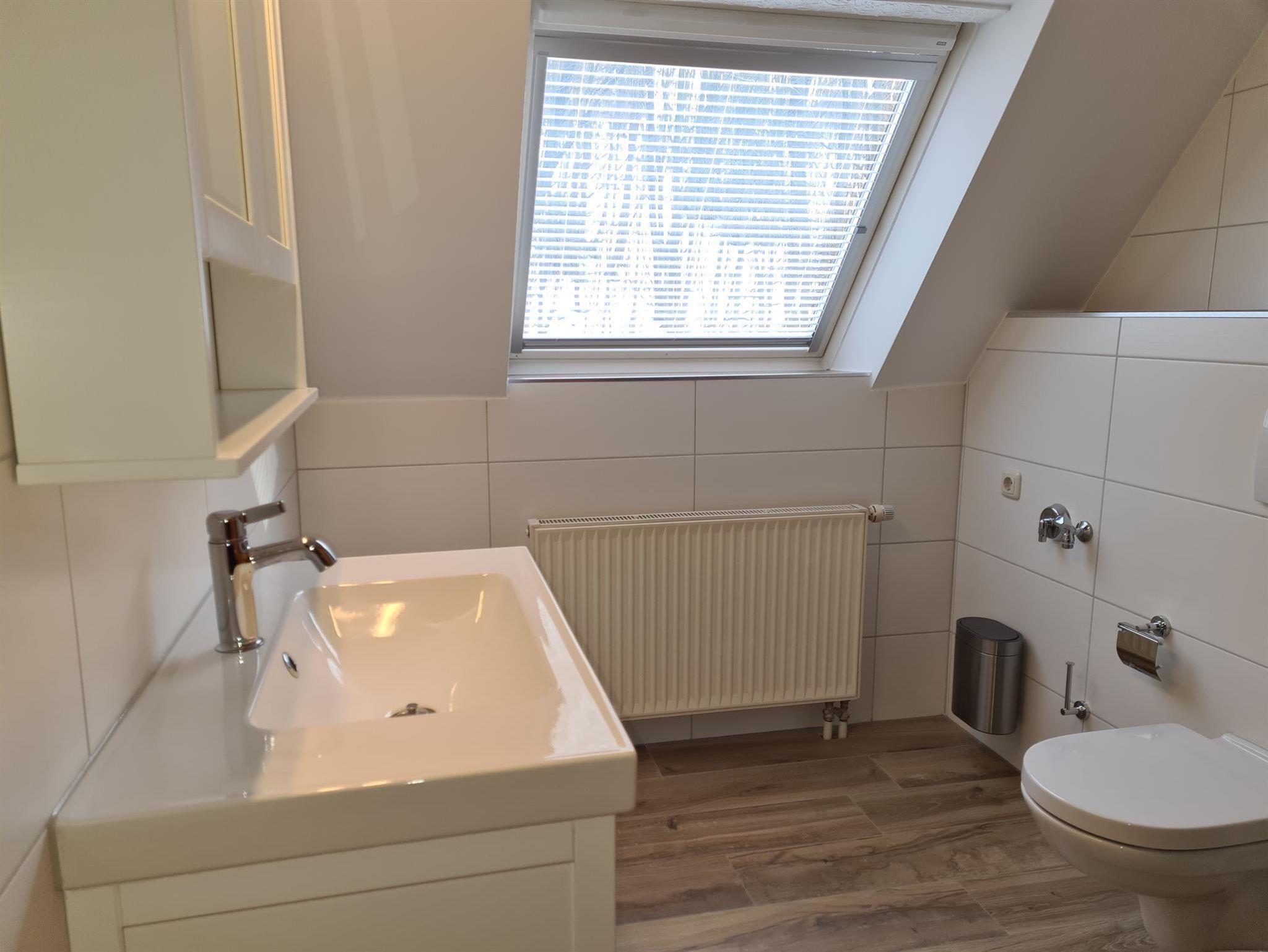 Wohnebene: Wohnzimmer mit neuem Essplatz, neue Leder-Couchen, Sat-TV, von hier aus mit Tür getrennt 1 separates großes Schlafzimmer mit Boxspringbett und Schwebetürenschrank, separate Küche komplett ausgestattet mit Ceranherd, Kaffeemaschine, Toaster, Wasserkocher, kleinem Essplatz, neues Bad (2021) mit Dusche und WC, Kosmetikspiegel und Haarföhn