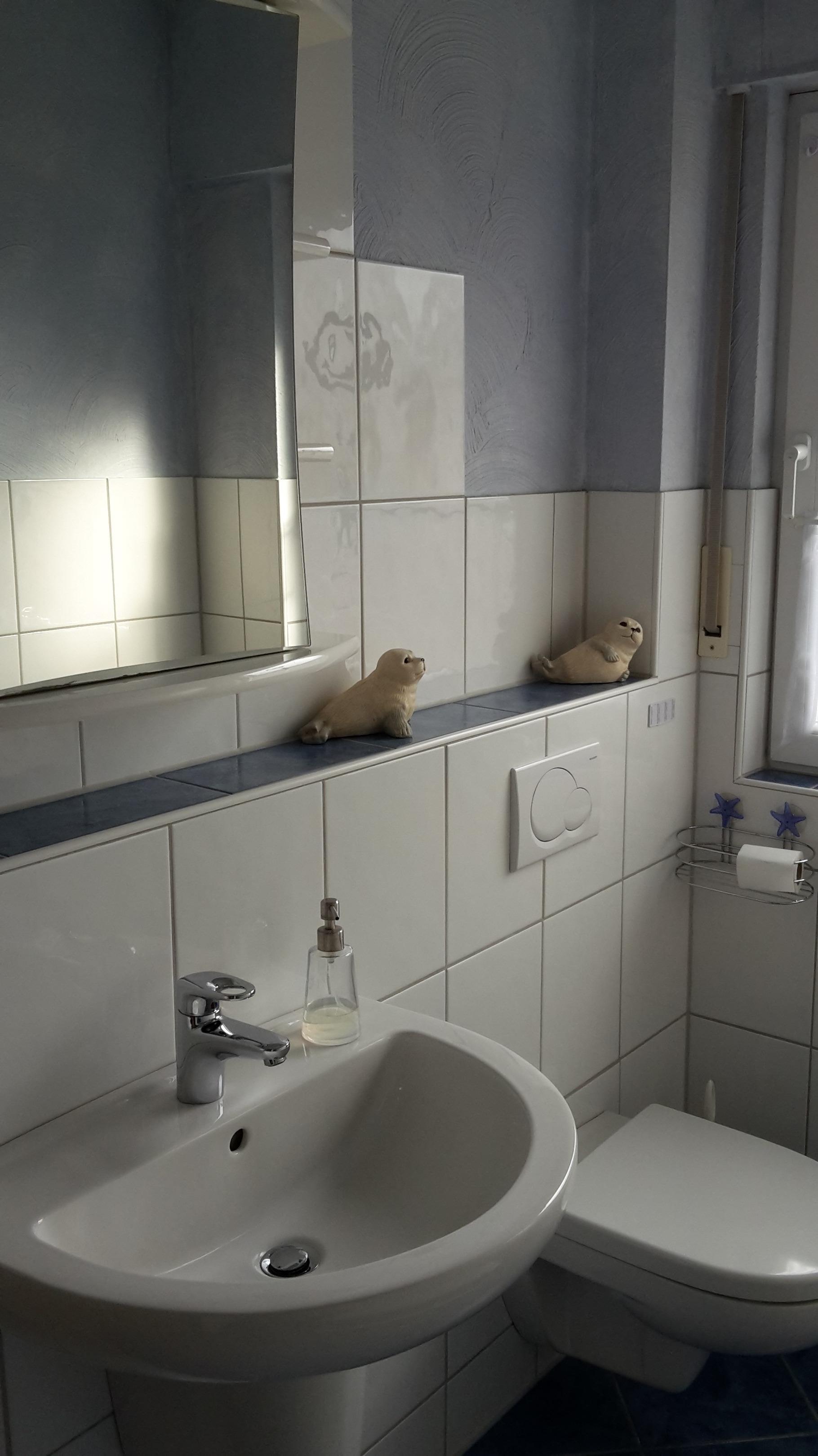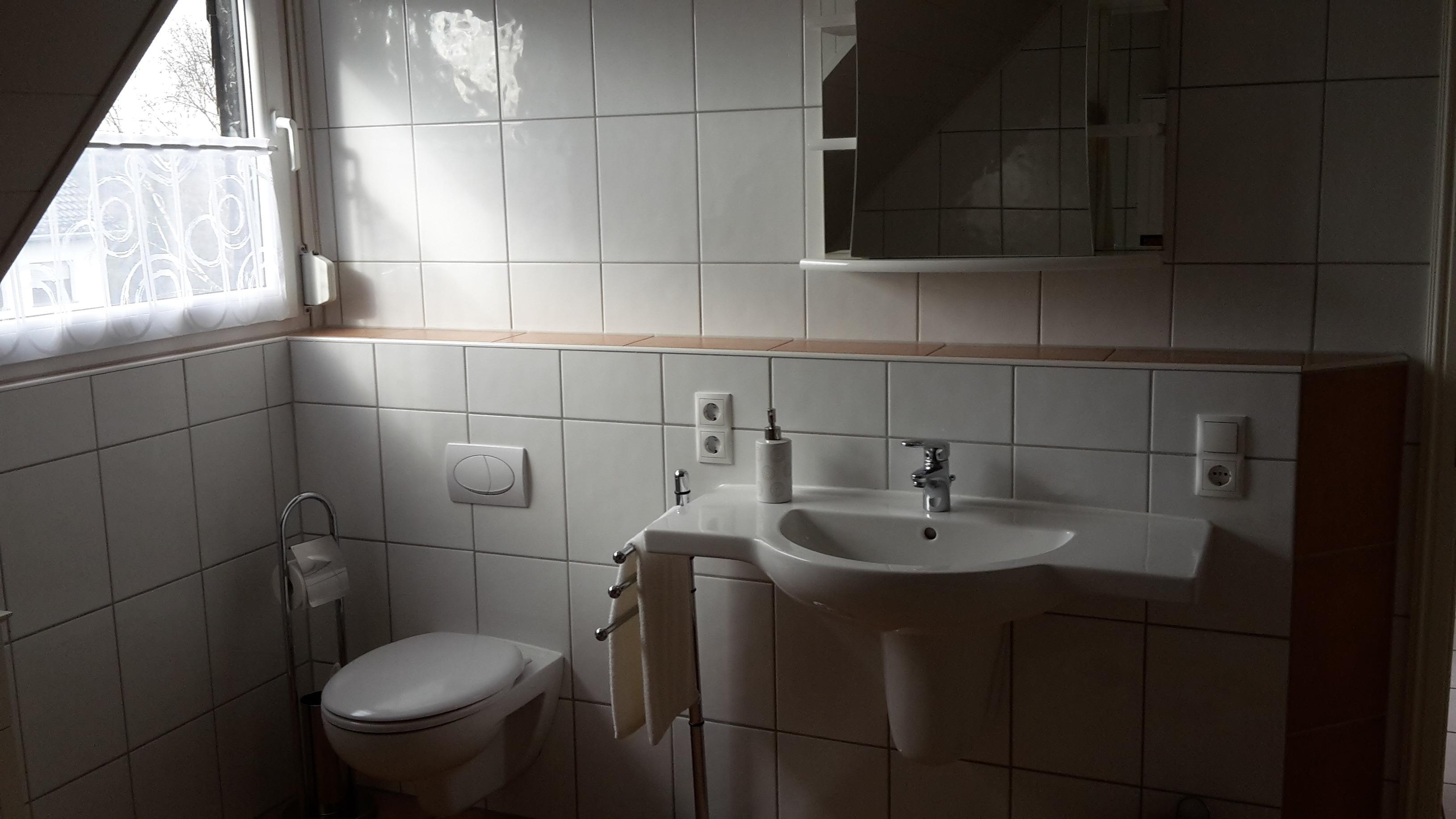 Gäste-WC: Waschbecken und WC.