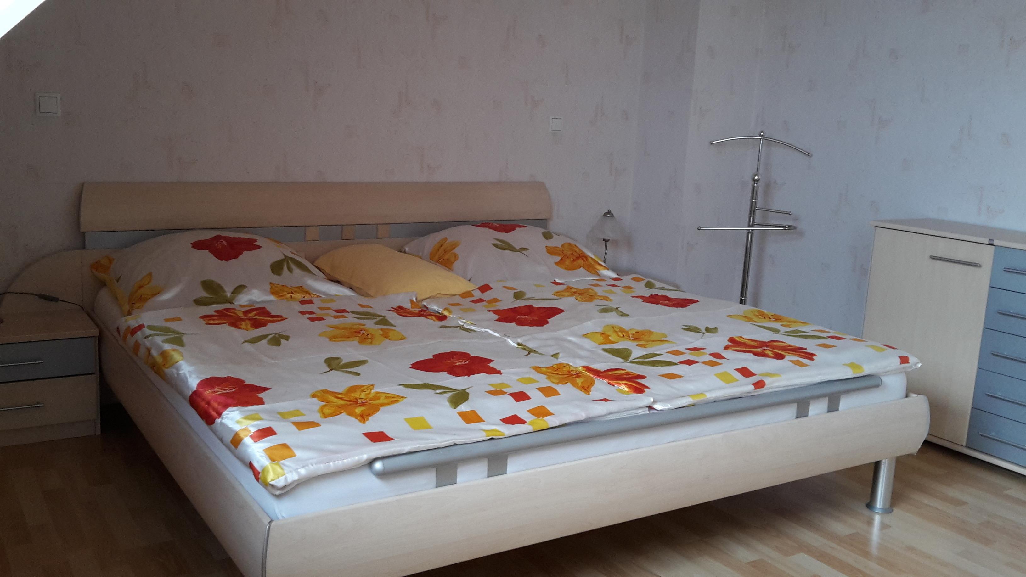 Schlafzimmer: Doppelbett 140 x 200 cm.
