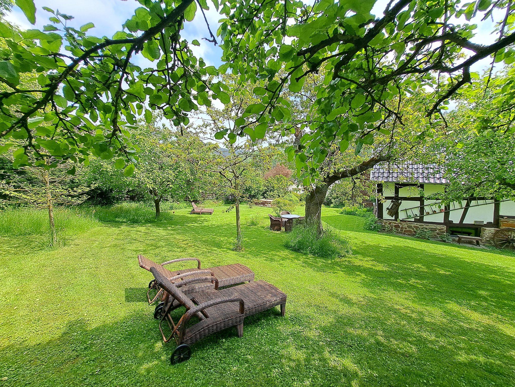 Ein weitläufiger Garten mit Sonnenliegen, Sauna und Obstbäumen lädt zum Entspannen, Lesen und Barbecue ein. Leih-Fahrräder und unser Eifel-Lädchen mit regionalen Produkten runden das Angebot ab.