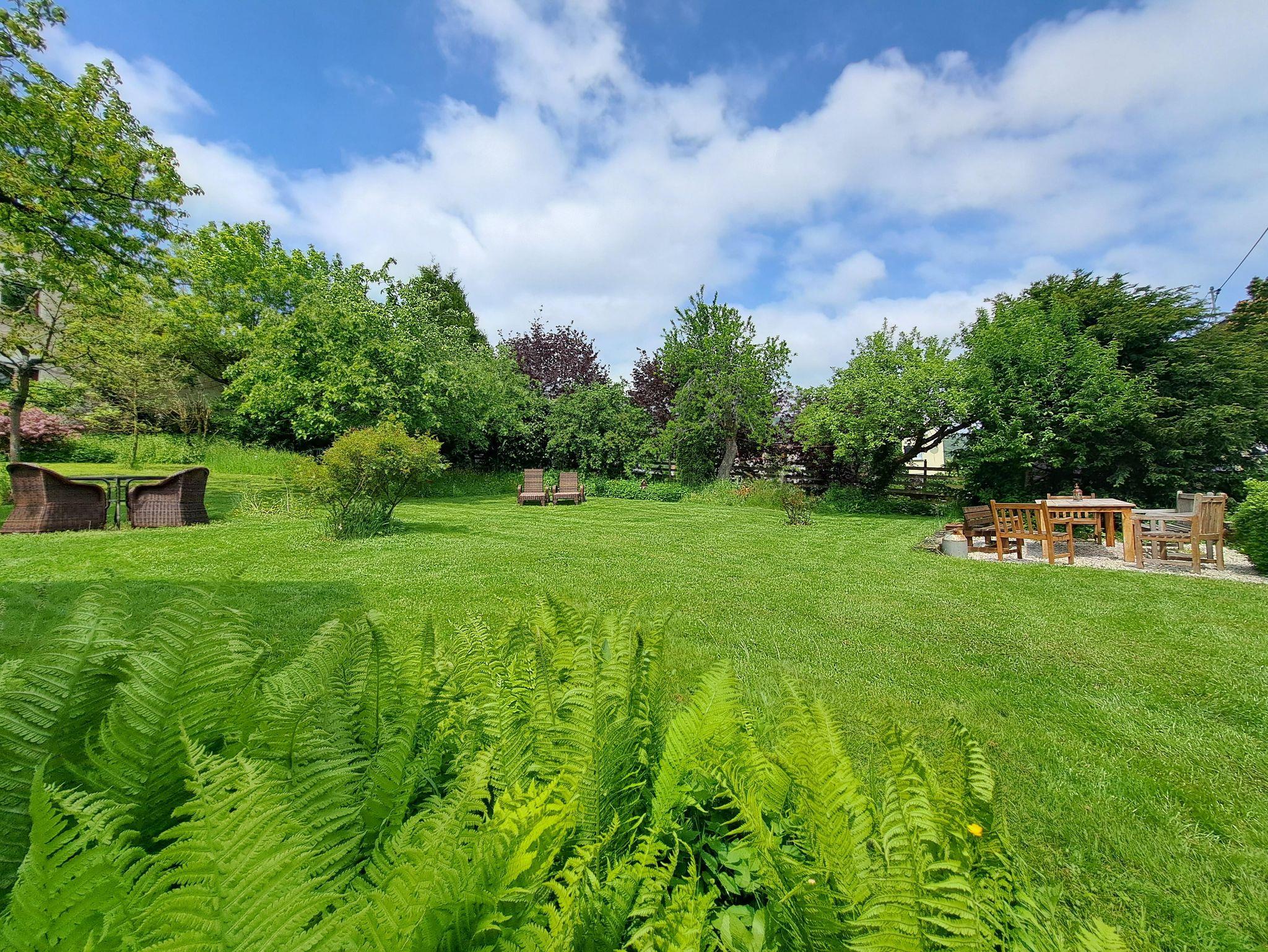 Ein weitläufiger Garten mit Kräutern für die frische Küche sowie vielen verschiedenen Obstbäumen, Sonnenliegen und einer neu angelegten Gartensauna lädt zum Entspannen, Lesen und Barbecue ein.