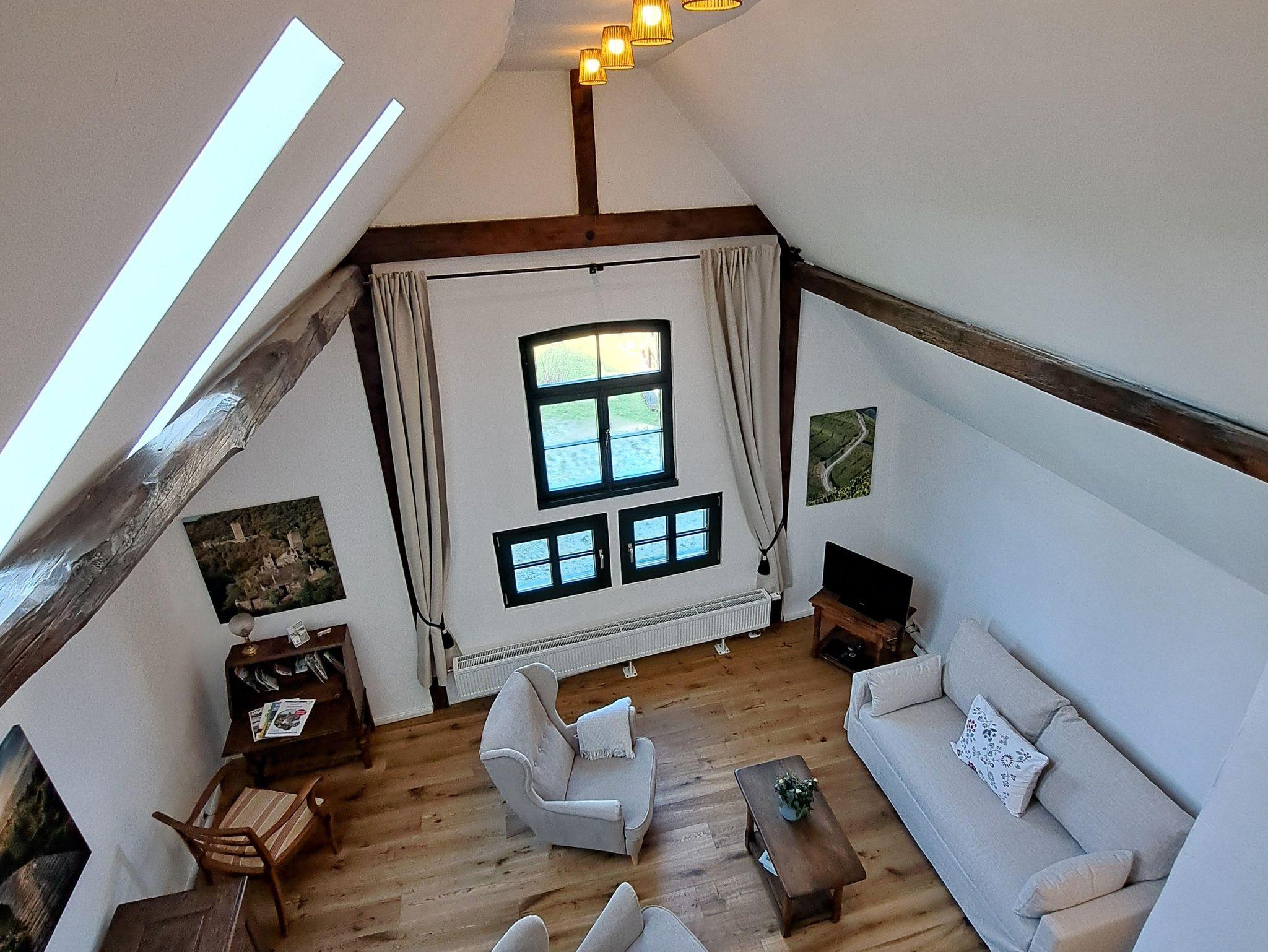 Auf dem Dachboden der ehemaligen Fachwerkscheune befinden sich heute zwei gemütliche Ferienwohnungen für 2 bis 3 Personen, während im angrenzenden Ferienhaus aus Naturstein auch größere Gruppen bis 9 Personen jede Menge Platz finden, um eine schöne gemeinsame Zeit zu erleben.