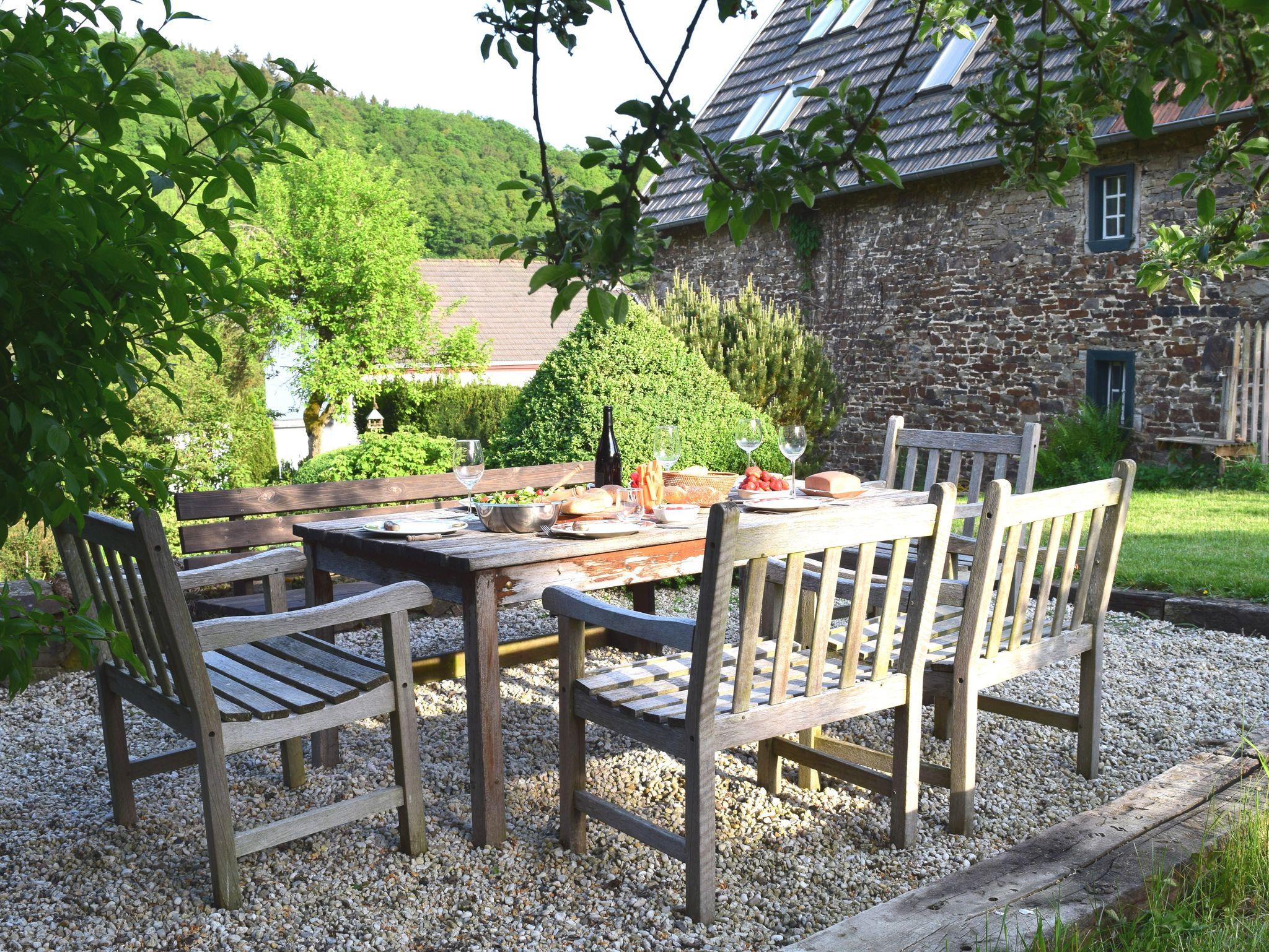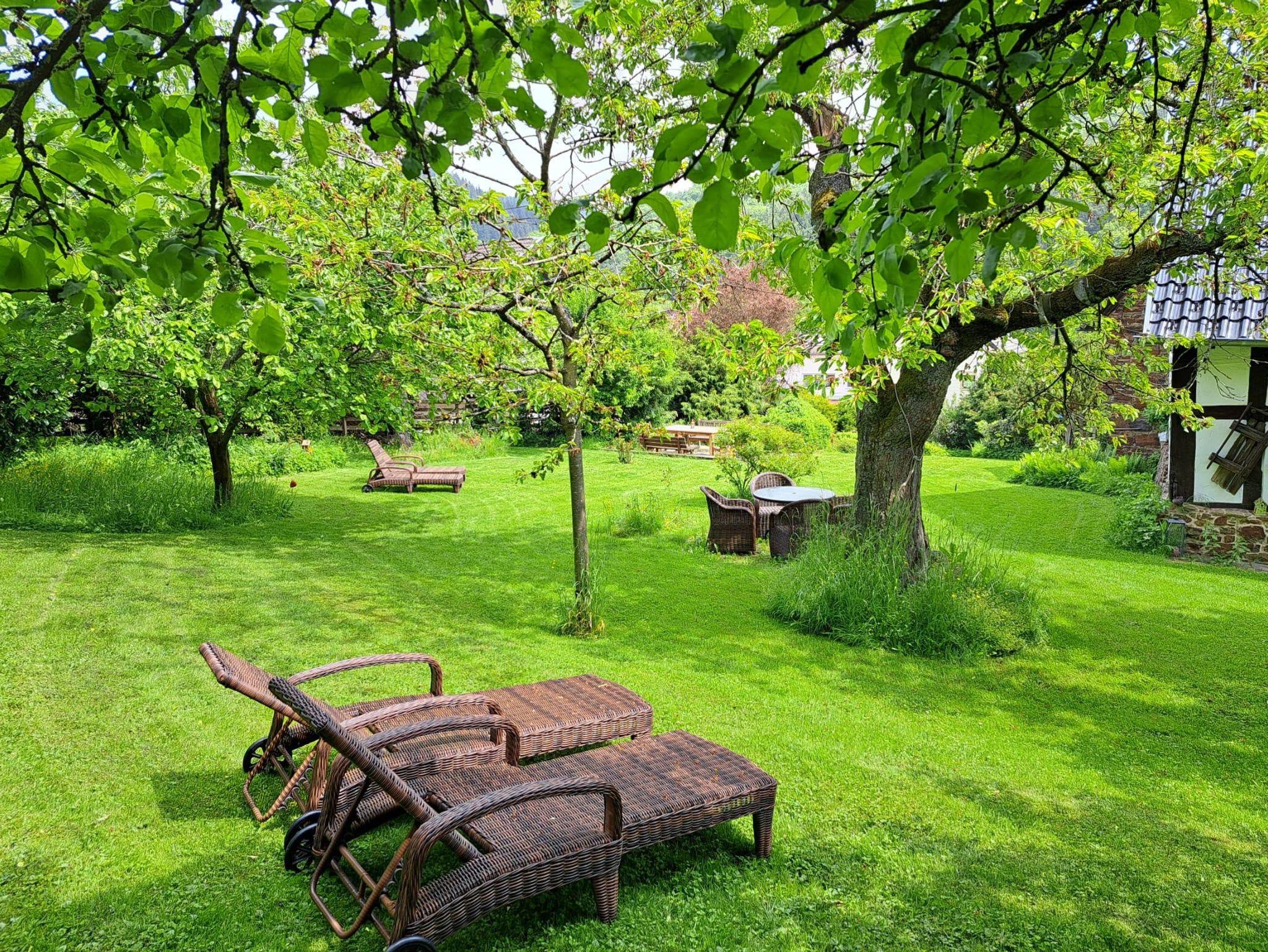 Ein weitläufiger Garten mit Sonnenliegen, Sauna und Obstbäumen lädt zum Entspannen, Lesen und Barbecue ein. Leih-Fahrräder und unser Eifel-Lädchen mit regionalen Produkten runden das Angebot ab.