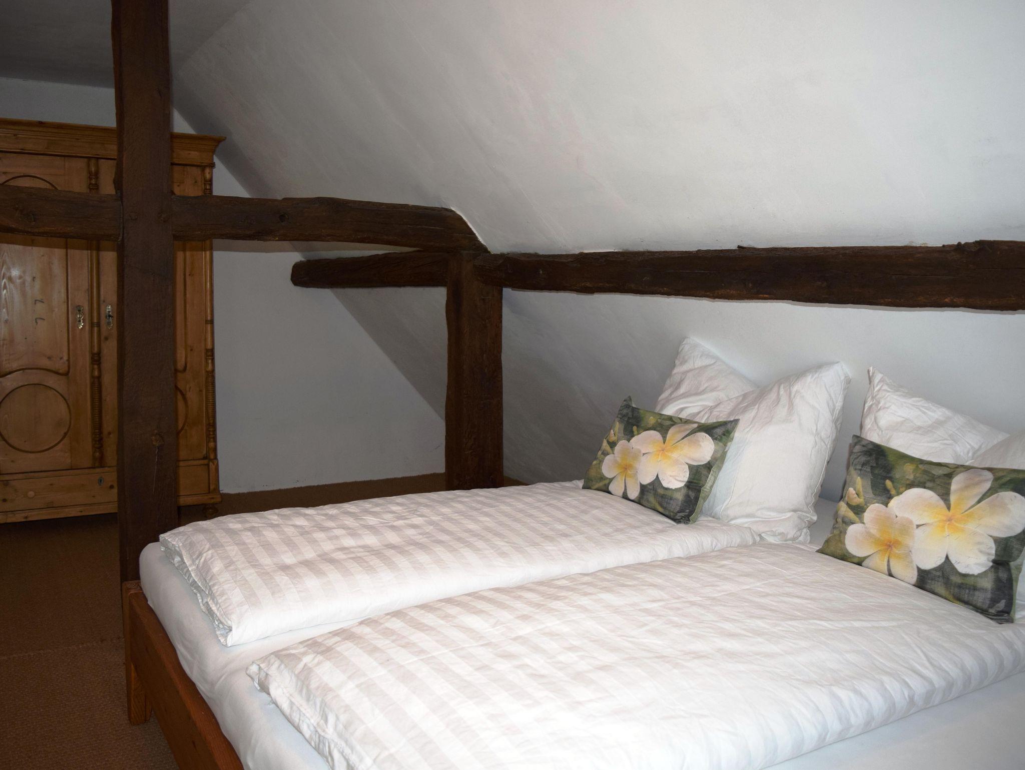 Auf dem Dachboden der ehemaligen Fachwerkscheune befinden sich heute zwei gemütliche Ferienwohnungen für 2 bis 3 Personen, während im angrenzenden Ferienhaus aus Naturstein auch größere Gruppen bis 9 Personen jede Menge Platz finden, um eine schöne gemeinsame Zeit zu erleben.