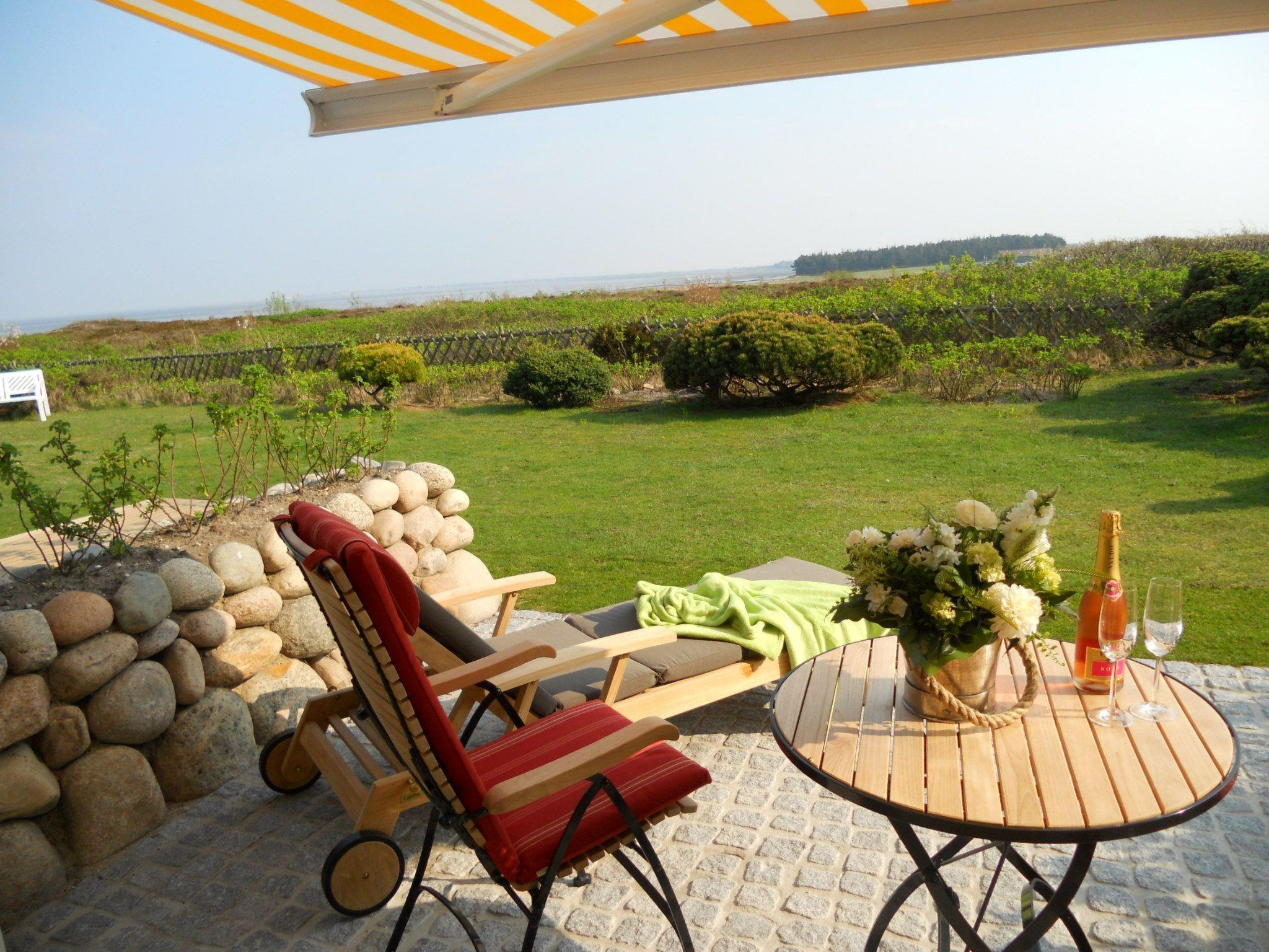 A sunny terrace with Garpa garden furniture invites you to relax on a nearby heath site with a direct view of the tidal flats. There is also a garden.