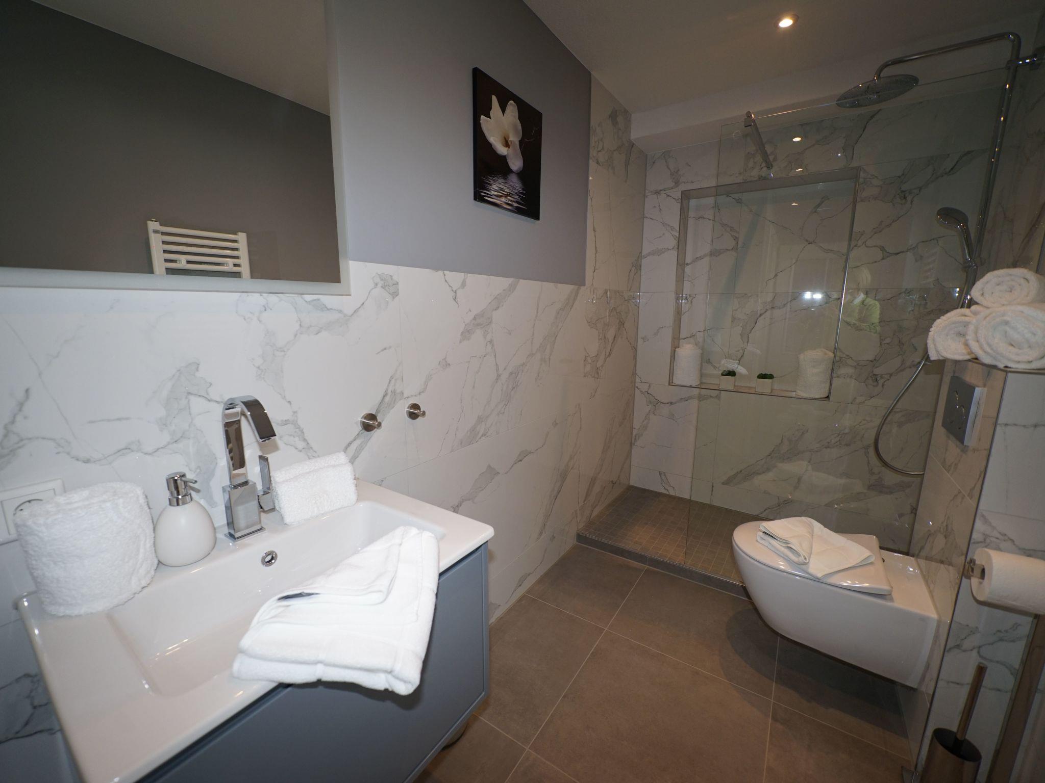 We warmly welcome you to our 3-room holiday flat Strand-Cottage in the newly opened "Strandvilla Schützenstraße 4" in Westerland.the generously designed flat with approx. 142 sqm extends over 2 levels (ground floor and basement) and offers you 2 terraces.arrive and feel good - is the maxim here! this ground floor flat is ideal for 4 people. It has a full bathroom and a guest WC. The living room has large windows facing south-west and a fireplace. The kitchen is equipped with a dining area for 4 people, a 4-burner ceramic hob, dishwasher, microwave oven and a second fireplace! From here you can access the large, partially covered south/west-facing terrace with garden furniture and a beach chair. The two bedrooms with their own TV are located in the basement. One has a walk-in wardrobe, the other has built-in wardrobes and both bedrooms offer cosy beds for dreaming. In the spacious bathroom you will find a shower, two washbasins and a bathtub for relaxing. In the basement of the house there is a washing machine and tumble dryer, an ironing board and iron as well as a sauna (for a fee), which can be used communally. Free Wifi is of course available throughout the house, and there are plenty of opportunities to relax and enjoy each other's company, whether in soft cushions, at the large dining table or on the terrace. Come with high expectations, they will be fulfilled here!