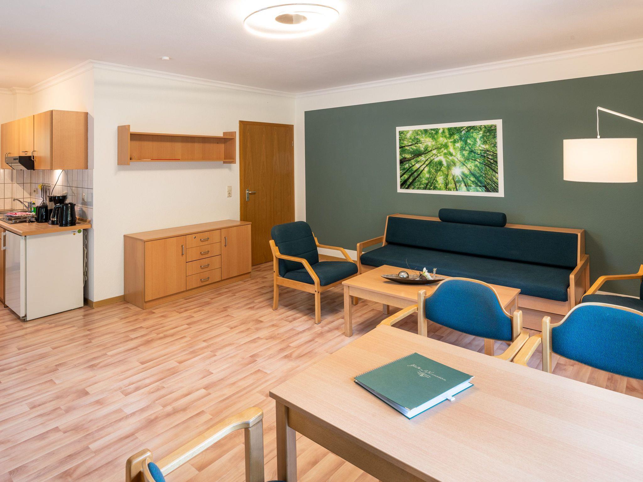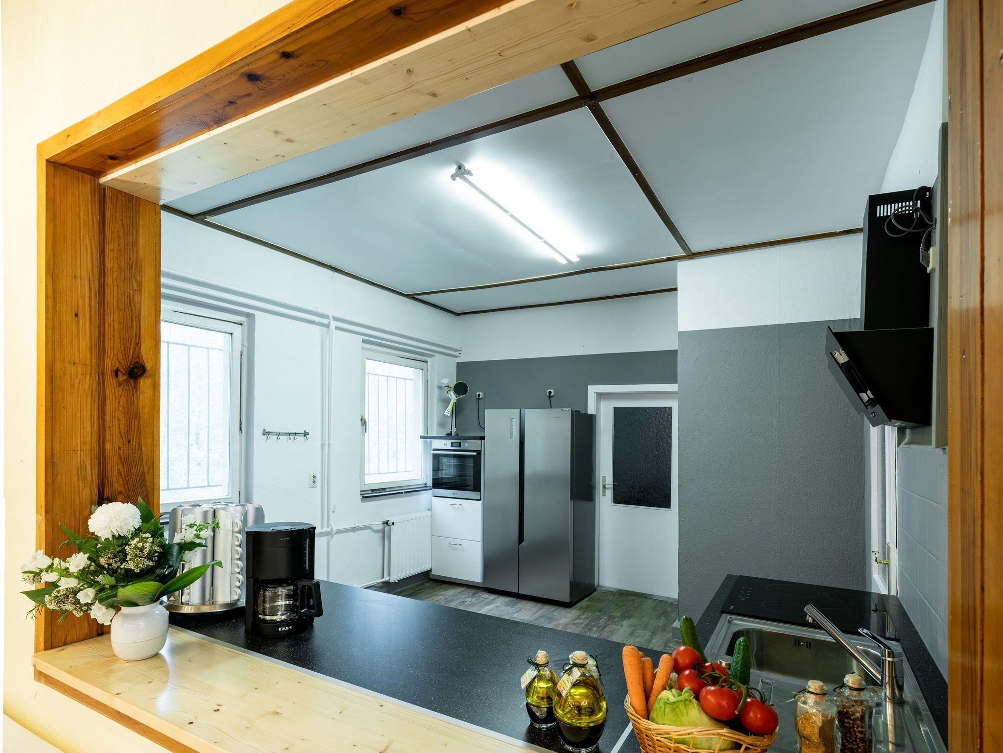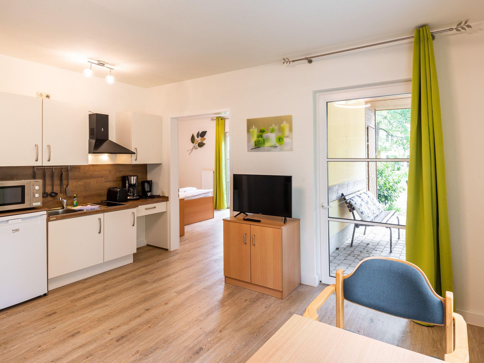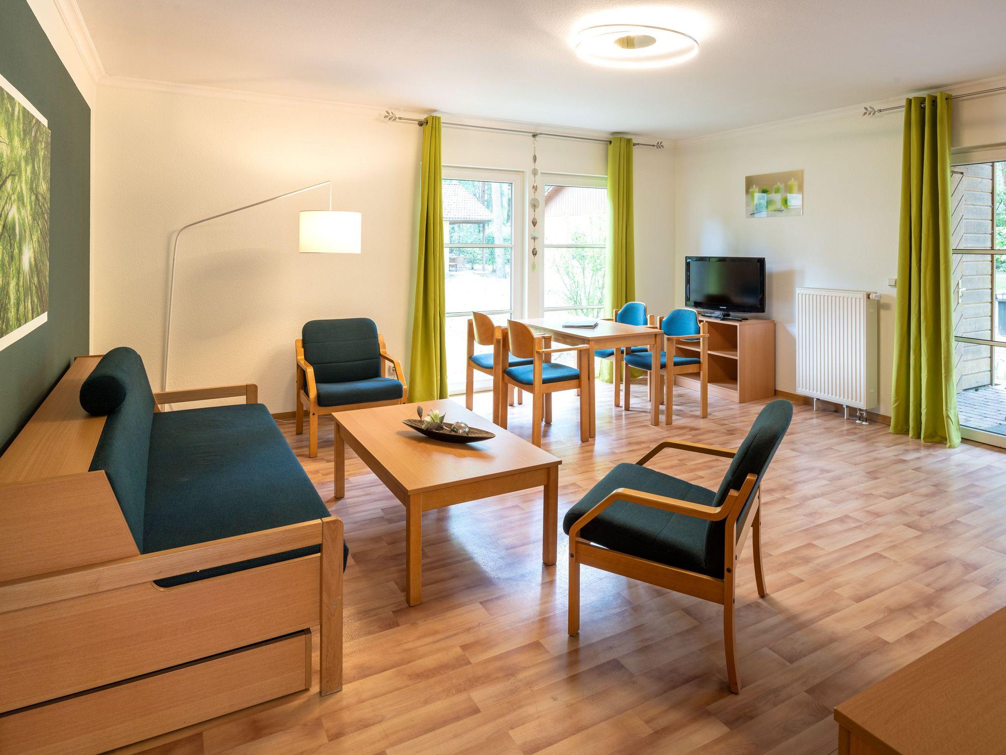 Jedes Ferienhaus ist modern eingerichtet und voll ausgestattet mit einer Einbauküche, barrierefreiem* Badezimmer, TV sowie in der Regel schadstoffarmen Möbeln und Bodenbelägen (Parkett / Linoleum). Besteht während des Aufenthalts im Ferienhaus die Notwendigkeit, Ihre Wäsche zu erledigen, so stehen hierfür auf dem IDA Gelände natürlich auch Waschmaschinen und Trockner zur Verfügung.