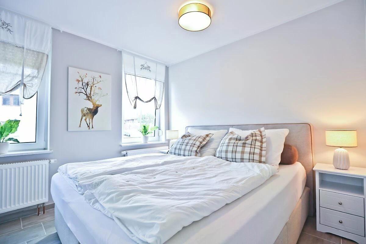 In der Wohnung "AusZeit" trifft Gemütlichkeit auf modernen Komfort: Auf 48?m² erwarten dich eine liebevoll eingerichtete Stube, ein Schlafzimmer mit begehbarem Kleiderschrank und ein stilvolles Bad. Die Küche mit Sitzecke rundet das kleine Refugium im Erdgeschoss ab.