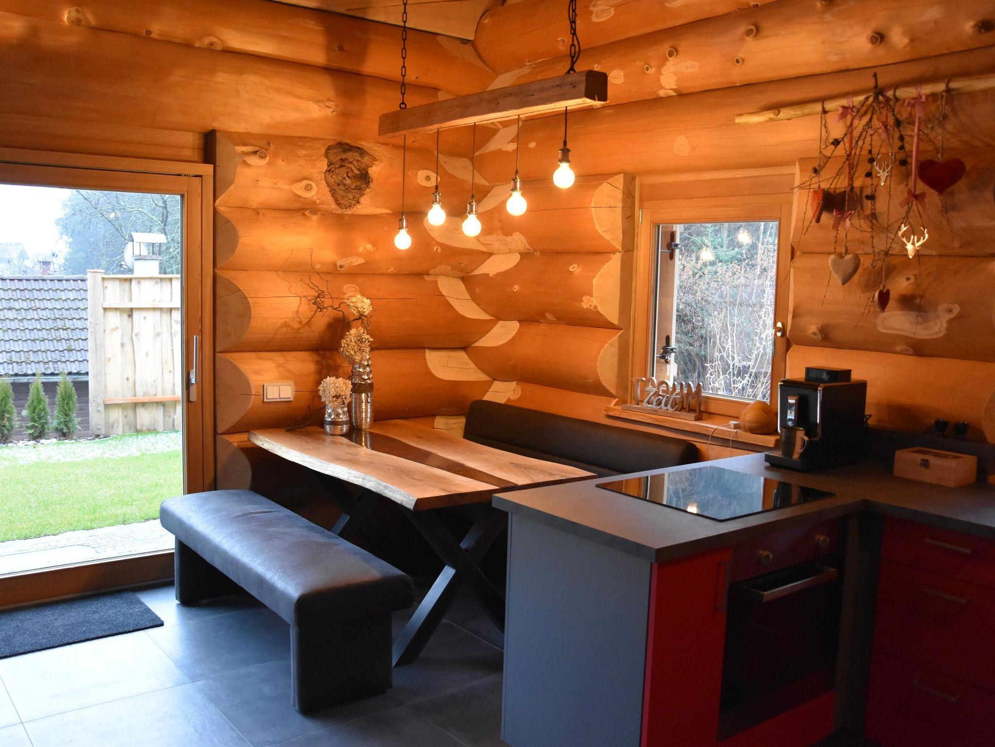 Alle Räume ebenerdig mit Fußbodenheizung, Wohnraum mit Küche, Essbereich, Couch, 65 TV mit Sky Fernsehprogramm, Schlafzimmer, Bad, Sauna.