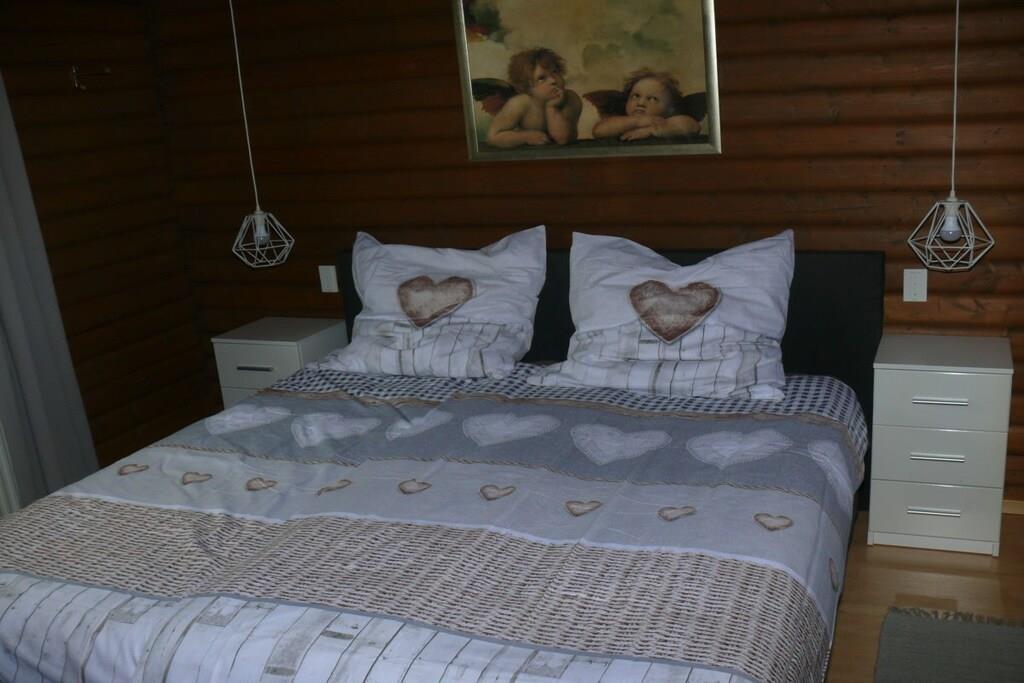 På 1. etage: (Stue(Fjernsyn, DVD-afspiller, radio, CD-afspiller), Køkken(Fjernsyn, spisebord, elkedel, brødrister, kaffemaskine, ovn, mikrobølgeovn, opvaskemaskine , køleskab, fryser), soveværelse(dobbeltseng, Fjernsyn, DVD-afspiller, barneseng), Børneværelse(enkeltseng, enkeltseng, Fjernsyn, DVD-afspiller, radio, barneseng, barnestol), badeværelse(bruser, håndvask, toilet, vaskemaskine, føntørrer)) På 2. etage: (soveværelse(dobbeltseng, Fjernsyn), badeværelse(badekar, håndvask, toilet, føntørrer)) grill, havemøbler, Parasol, baldakin