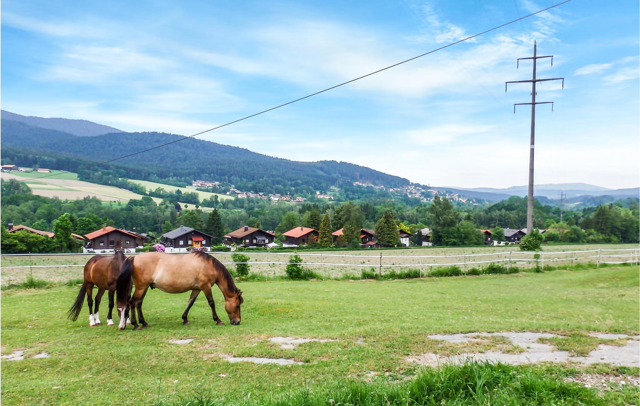 Hold familieferie med skov og bjerge som kulisse. I bliver placeret i feriebyen Am Hohen Bogen i Bayern, hvor der er smukt både sommer og vinter.