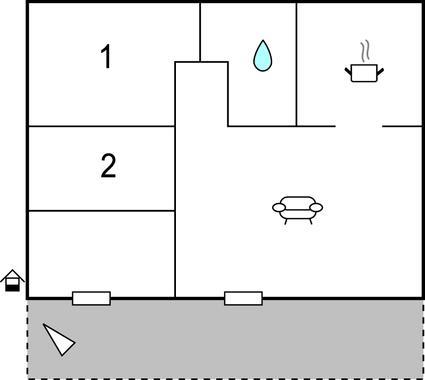 Ferielejligheden består af en opholdsstue, et fuldt udstyret køkken med opholdsområde samt to soveværelser og et badeværelse.
