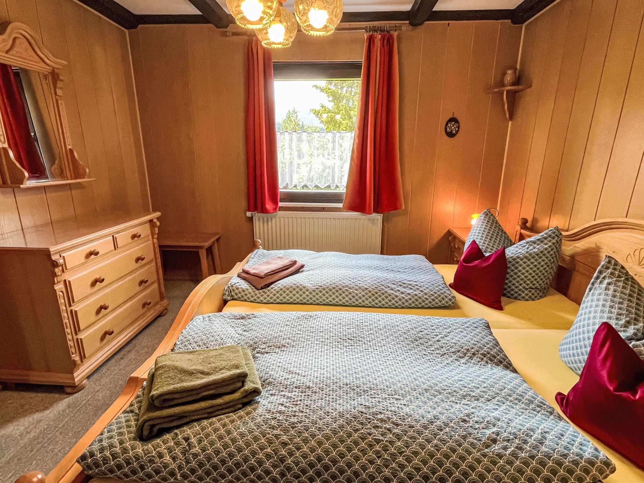 3-room apartment 75 m2, on the upper floor. Cosy and wooden furniture furnishings: living room 35 m2 with satellite TV (flat screen). Exit to the balcony. 1 room 13 m2 with 1 double bed (200 cm, length 200 cm). 1 room 9 m2 with 1 bed (90 cm, length 190 cm), 1 x 2 bunk beds (90 cm, length 190 cm). Open kitchen 9 m2 (4 hot plates, oven, toaster, kettle, microwave, electric coffee machine) with dining nook. Shower/WC. Gas heating. Large balcony 20 m2, south facing position and west facing position. Balcony furniture. Beautiful view of the mountains. Facilities: Internet (WiFi, free). Please note: non-smokers only. Private entrance, smoke alarm. Balcony partly covered. Lake 100 m. Bookings accepted for holiday purposes only.