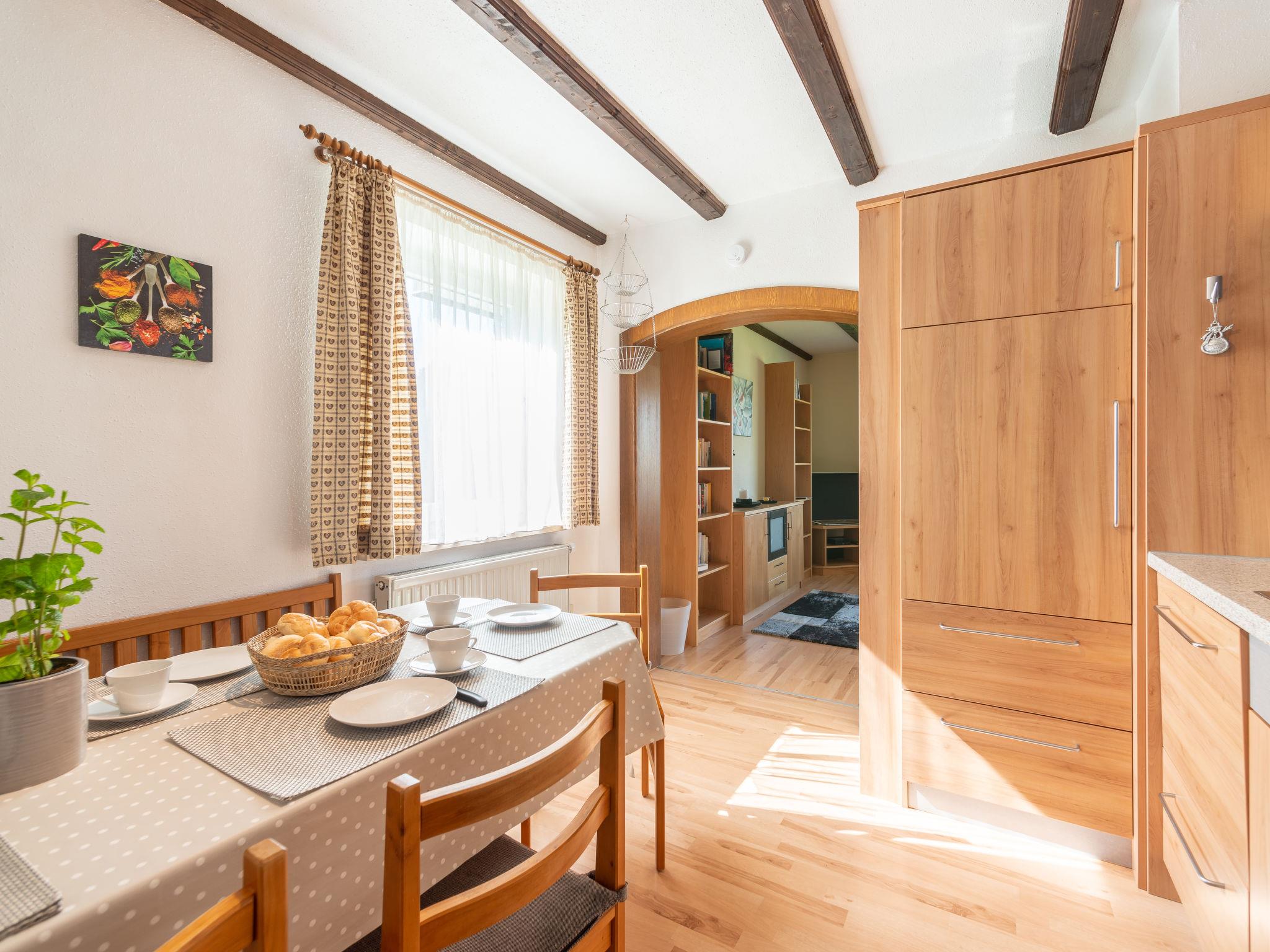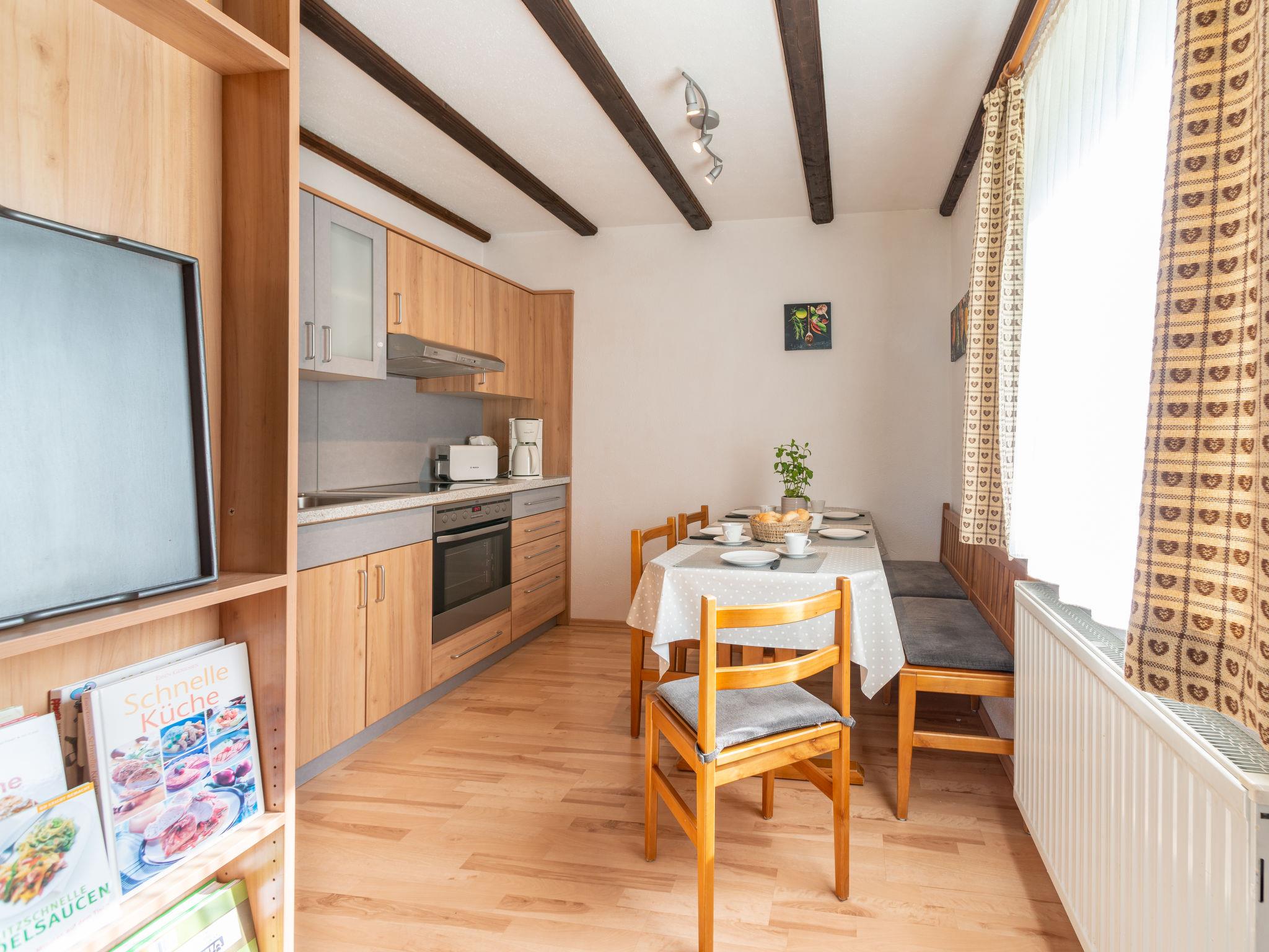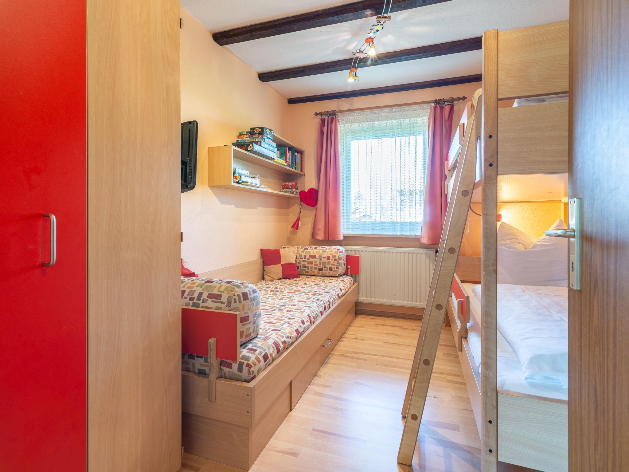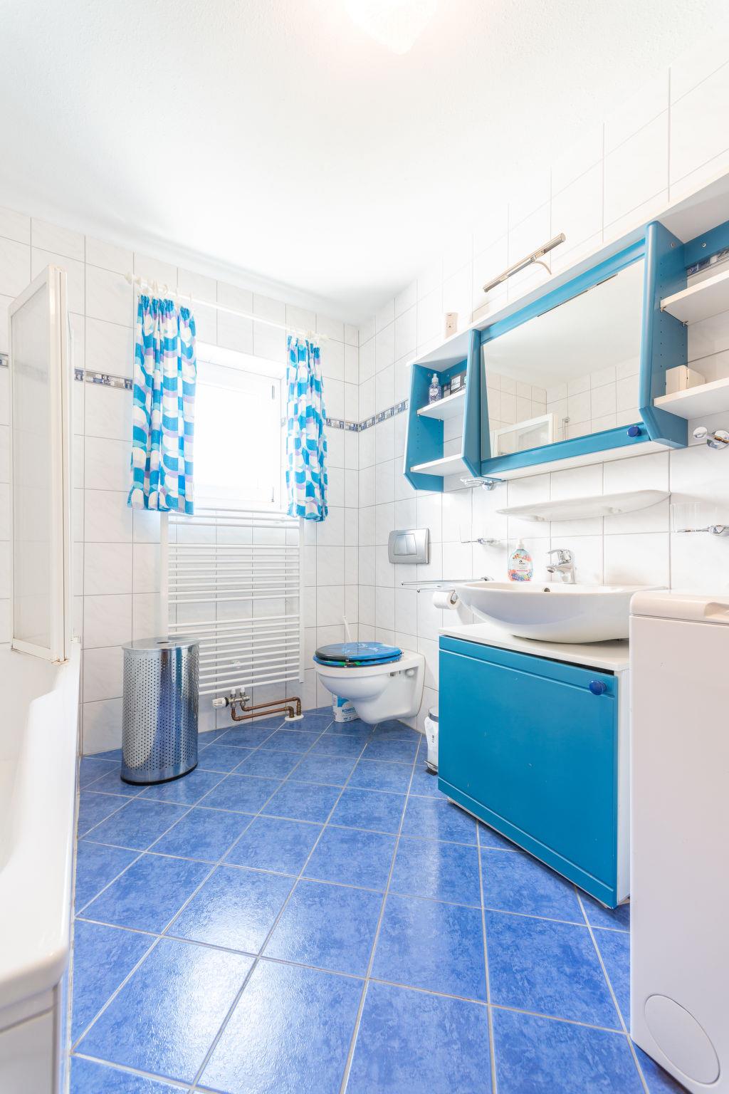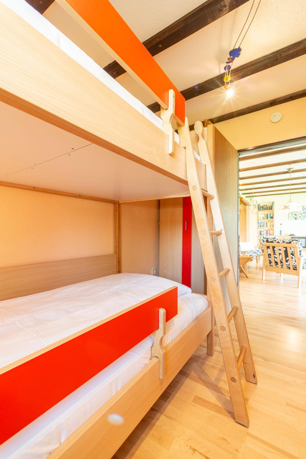 3-room apartment 75 m2, on the ground floor. Cosy furnishings: living/dining room 35 m2 with satellite TV (flat screen), video, CD-player, DVD and DVD collection available. Exit to the garden, to the terrace. 1 room 13 m2 with 1 double bed (190 cm, length 200 cm). 1 room 9 m2 with 1 bed (80 cm, length 190 cm), 1 x 2 bunk beds (90 cm, length 190 cm), satellite TV (flat screen), video, CD-player and DVD. Open kitchen 9 m2 (oven, dishwasher, 4 ceramic glass hob hotplates, toaster, kettle, microwave, electric coffee machine) with dining table. Bath/shower/WC. Gas heating. Large terrace 30 m2 partly roofed, garden 250 m2, lawn 150 m2. Terrace furniture, barbecue (portable), deck chairs (2), sitting area. Beautiful view of the mountains. Facilities: washing machine, safe, iron, children's high chair, hair dryer. Internet (WiFi, free). Blu-ray player. Please note: non-smokers only. Private entrance, suitable for allergy sufferers, smoke alarm. The additional bed, which can be booked free of charge, is located in the 9 m2 bedroom. Books and games collection available. Lake 150 m.