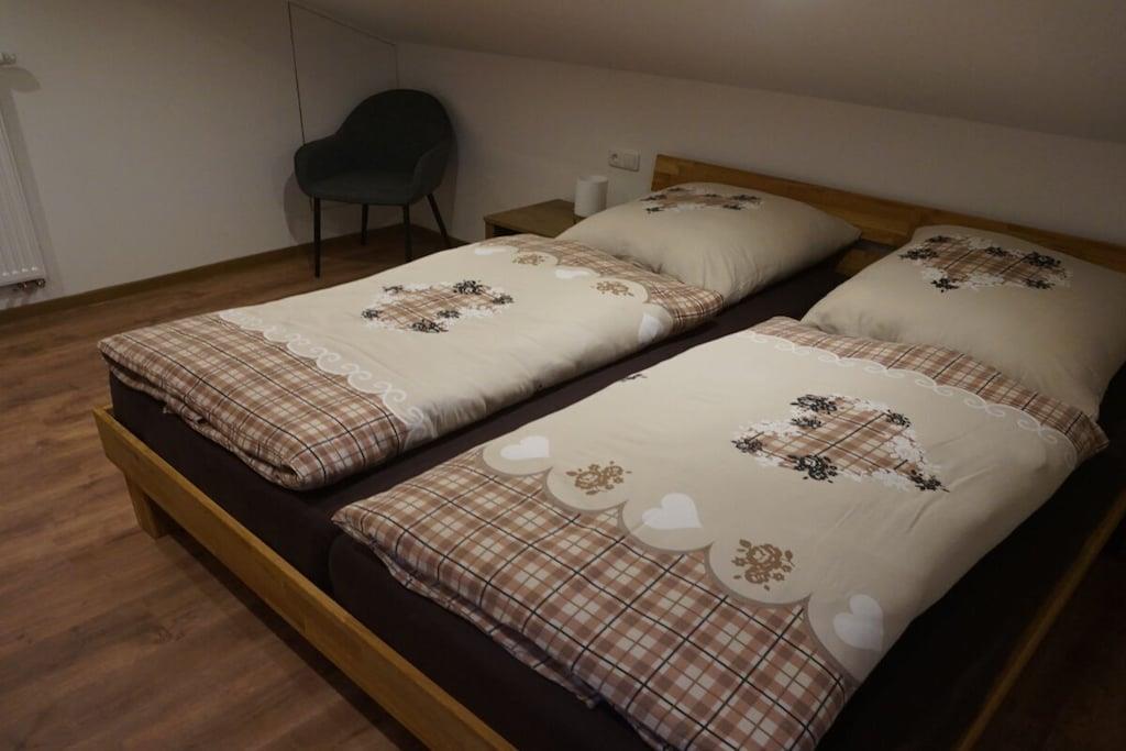 Die Ferienwohnung Brandl Haus 92 OG. hat insgesamt 75 m². Sie verfügt über 2 Schlafzimmer,Wohnzimmer,Küche und Bad. Die Wohnung ist komplett neu renoviert und eingerichtet. Sie eignet sich für 4 Personen und ein Baby. Für die kleinen Gäste stellen wir ein Babybett und einen Hochstuhl zur Verfügung. Haustiere sind nach Absprache erlaubt. Das Dachgeschoss ist neu ausgebaut und neu eingerichtet .1 Schlafzimmer mit Doppelbett und Bad mit ebenerdiger Dusche. Gesamt bietet dann die Ferienwohnung Platz für bis zu 6 Personen.Das Dachgeschoss ist für 2 Person geeignet , pro Person 17,50 EURO aufpreis pro Tag. Wer nur das OG. buchen möchte und ein zweites Bad will, kann das Bad im DG dazubuchen. 10 EURO pro Tag aufschlag.