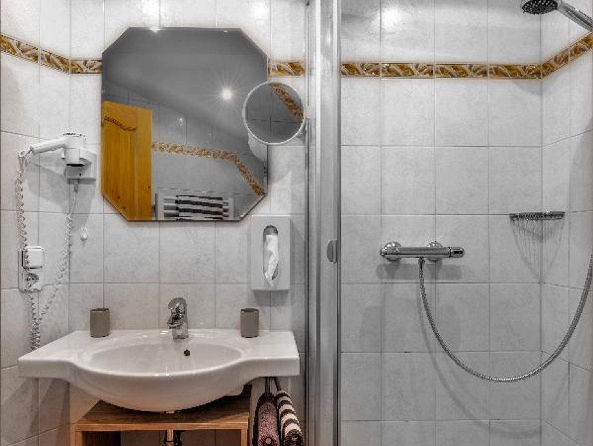 Schlaf. Das moderne Bad verfügt über eine Dusche, WC, Fön und einen
