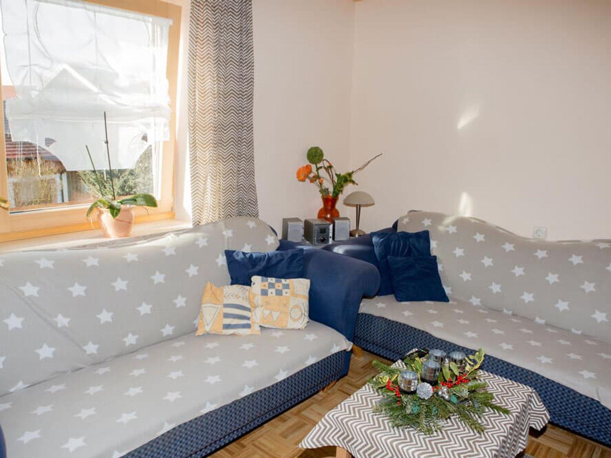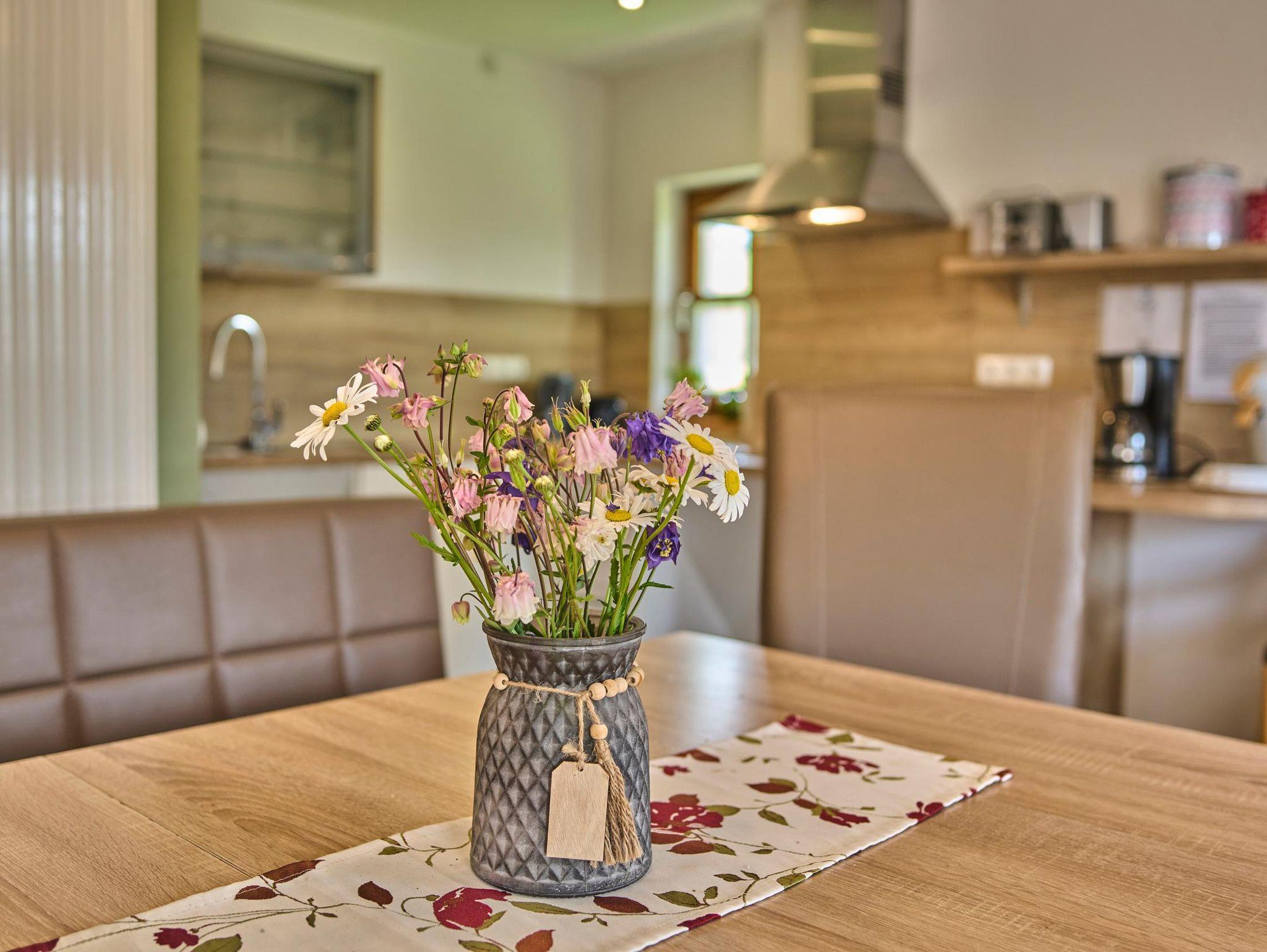 Die Ferienwohnung Eisenstein (60 qm) ist für 4 Personen geeignet. Sie verfügt über zwei schöne Schlafzimmer (1x Doppelbett, 1x Einzelbett). Das Wohnzimmer mit Sat-TV und großer Couch lädt zum Verweilen ein. Die Küche mit Spülmaschine, Mikrowelle, Toaster, Wasserkocher, Espressomaschine lässt keine Wünsche offen. Das Bad besteht aus Dusche und WC. Babygerechte Ausstattung möglich. Frühstücksbuffet gegen Aufpreis möglich. Tischtennisraum mit großem Fußballkicker, große Liegewiese mit Liegen und Grill und ein separater Waschraum mit Waschmaschine und Trockner stehen unseren Gästen zur Verfügung. Kostenloses Reiten am Hof und auf Wunsch Kinderbetreuung. Separates Kinderspielzimmer, Aufenthaltsraum, eigener schattiger Kinderspielplatz mit Baumhaus, großem Trampolin und Lagerfeuerstelle.