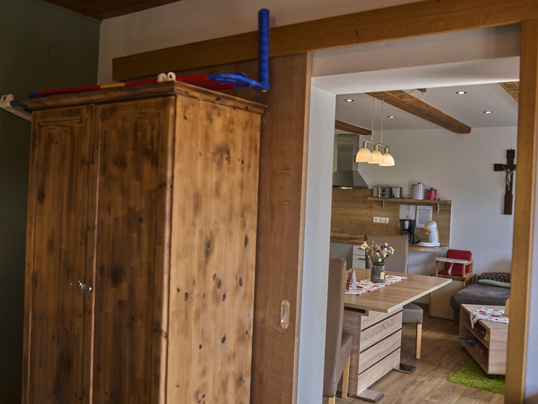 Die Ferienwohnung Bleikristall (70 qm) ist für 4 Personen geeignet. Sie verfügt über zwei schöne Schlafzimmer (1x Doppelbett, 1x franz. Bett). Das Wohnzimmer mit Sat-TV, großer Couch und Kachelofen lädt zum Verweilen ein. Die Küche mit Spülmaschine, Mikrowelle, Toaster, Wasserkocher, Espressomaschine lässt keine Wünsche offen. Das Bad besteht aus Dusche und WC. Auf dem schönen Balkon können Sie die Sonne und Aussicht genießen. Babygerechte Ausstattung möglich. Frühstücksbuffet gegen Aufpreis möglich. Tischtennisraum mit großem Fußballkicker, große Liegewiese mit Liegen und Grill und ein separater Waschraum mit Waschmaschine und Trockner stehen unseren Gästen zur Verfügung. Kostenloses Reiten am Hof und auf Wunsch Kinderbetreuung. Separates Kinderspielzimmer, Aufenthaltsraum, eigener schattiger Kinderspielplatz mit Baumhaus, großem Trampolin und Lagerfeuerstelle.