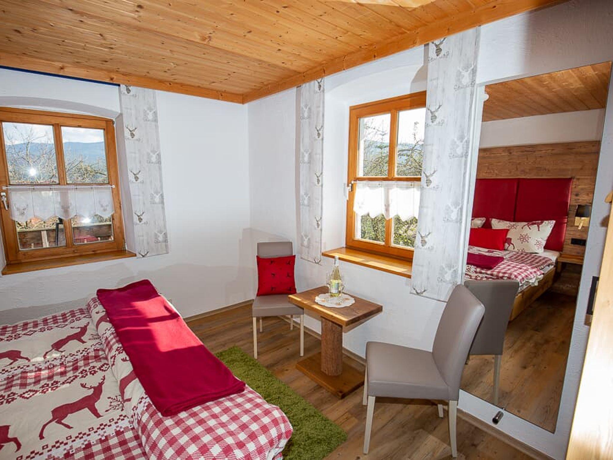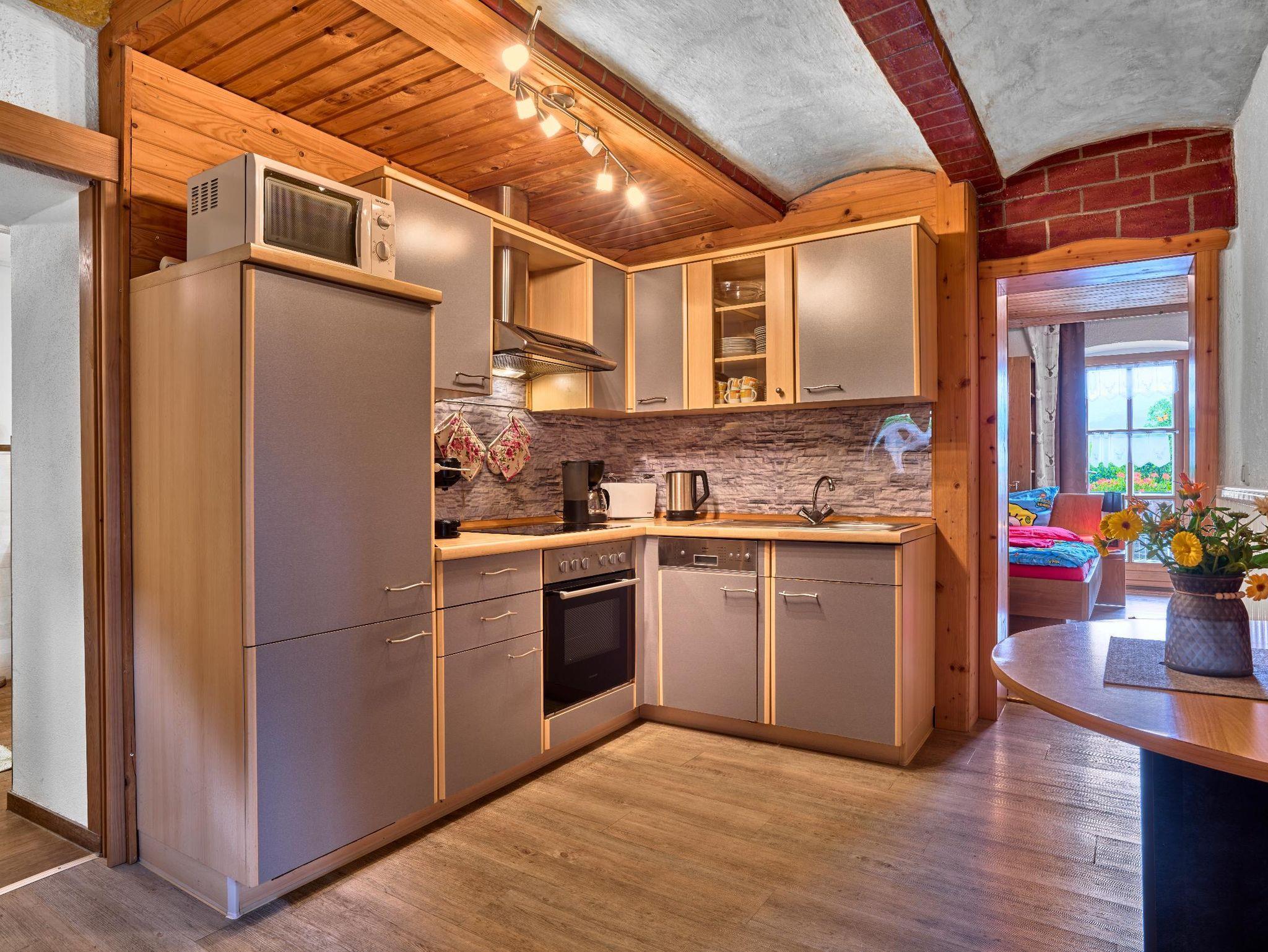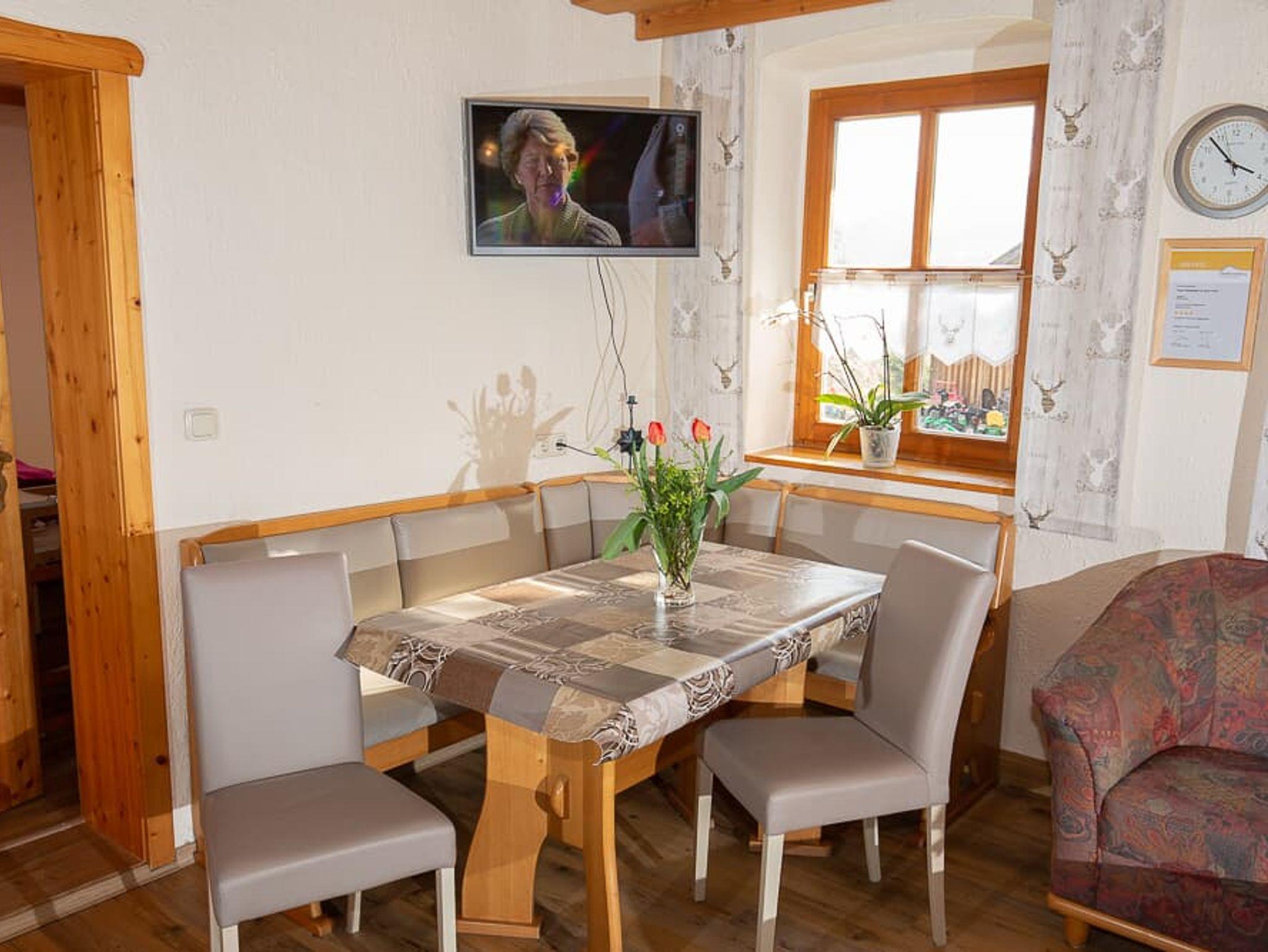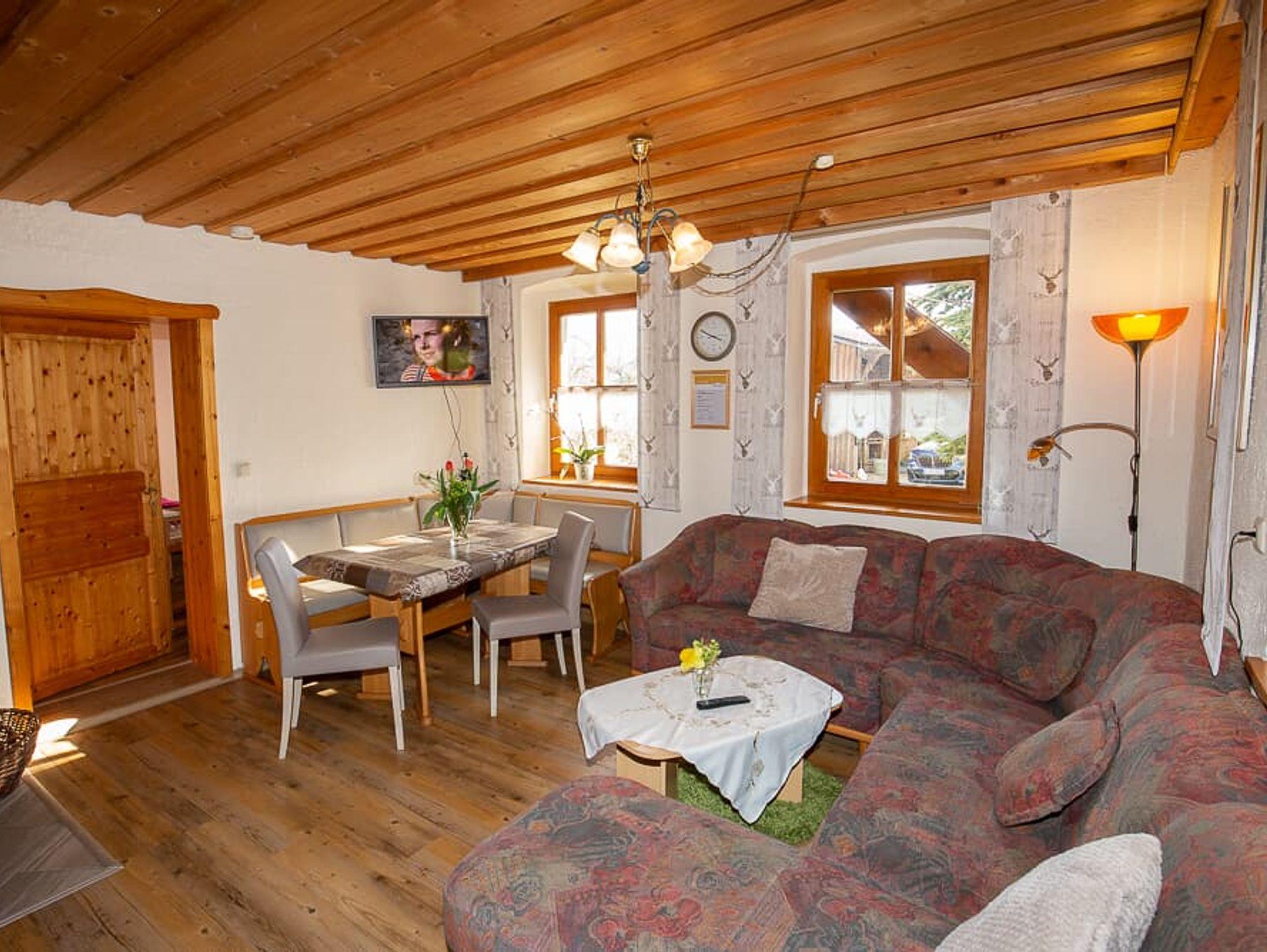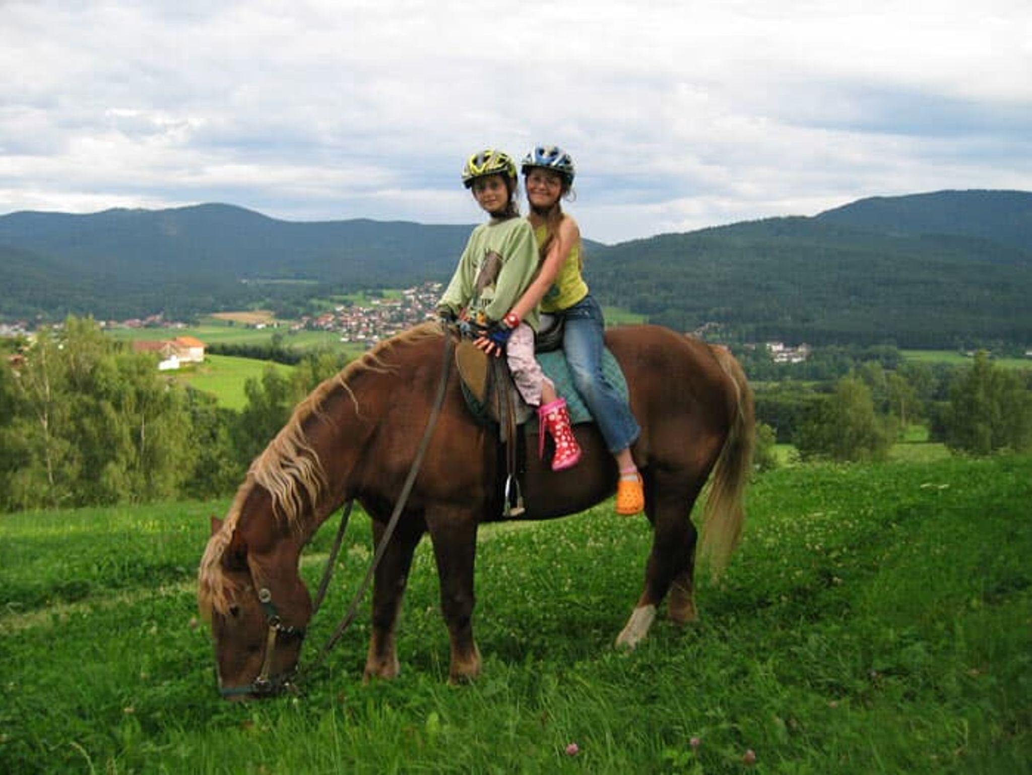 Die Ferienwohnung Riedelstein ist 65 qm groß für bis zu 4 Personen geeignet. Sie verfügt über zwei schöne Schlafzimmermit jeweils einem bequemen Doppelbett. Das Wohnzimmer mit Sat-TV, großer Couch und Kachelofen lädt zum Verweilen ein. Die Küche mit Spülmaschine, Mikrowelle, Toaster, Wasserkocher, Espressomaschine und Esstisch lässt keine Wünsche offen. Das Bad besteht aus Dusche und WC. Auf der schönen Terrasse können Sie die Sonne und Aussicht genießen. Babygerechte Ausstattung möglich. Frühstücksbuffet gegen Aufpreis möglich. Tischtennisraum mit großem Fußballkicker, große Liegewiese mit Liegen und Grill und ein separater Waschraum mit Waschmaschine und Trockner stehen unseren Gästen zur Verfügung. Kostenloses Reiten am Hof und auf Wunsch Kinderbetreuung. Separates Kinderspielzimmer, Aufenthaltsraum, eigener schattiger Kinderspielplatz mit Baumhaus, großem Trampolin und Lagerfeuerstelle.