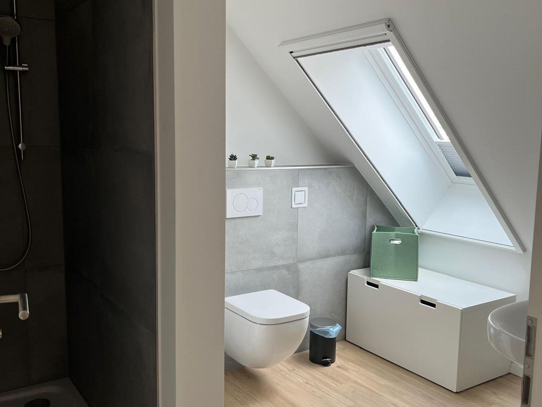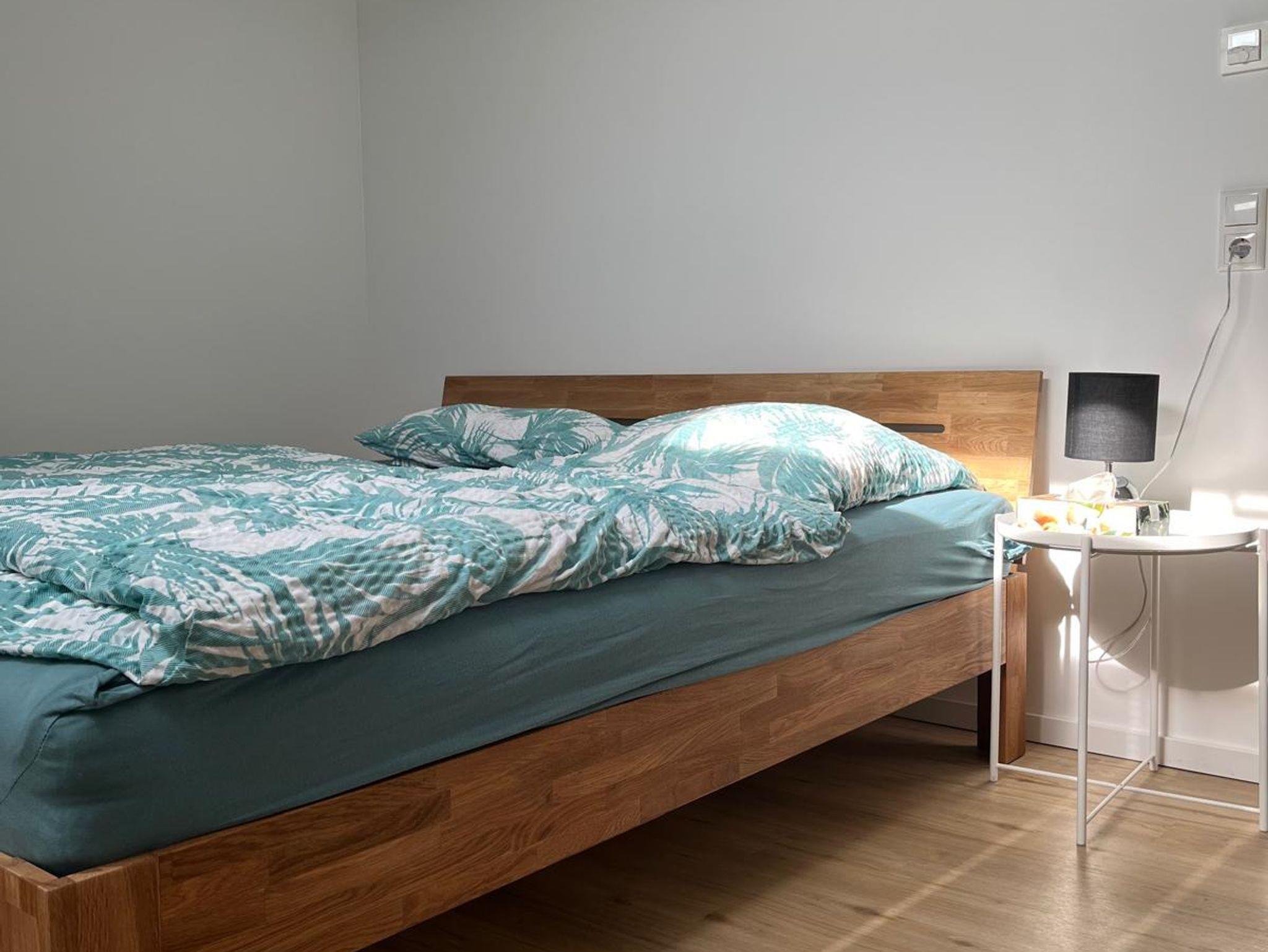 Die helle 60 m² Wohnung verfügt über 2 Schlafzimmer, eine Wohnküche und ein modernes Bad mit Dusche. In einem Schlafzimmer befindet sich ein Doppelbett und in dem 2. Schlafzimmer gibt es 2 Einzelbetten. Im Wohnbereich findet man eine Sitzgruppe mit Schlafcouch sowie TV. Die Küche beinhaltet einen Herd mit Backofen, eine Spülmaschine sowie Kühlschrank mit Gefrierfach. Auf einer kleinen Dachterasse kann man verweilen und den Ausblick genießen. Ein Pkw-Stellplatz ist vorhanden.