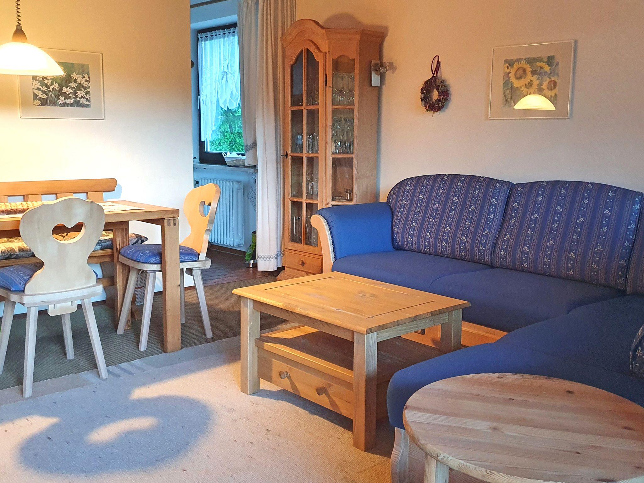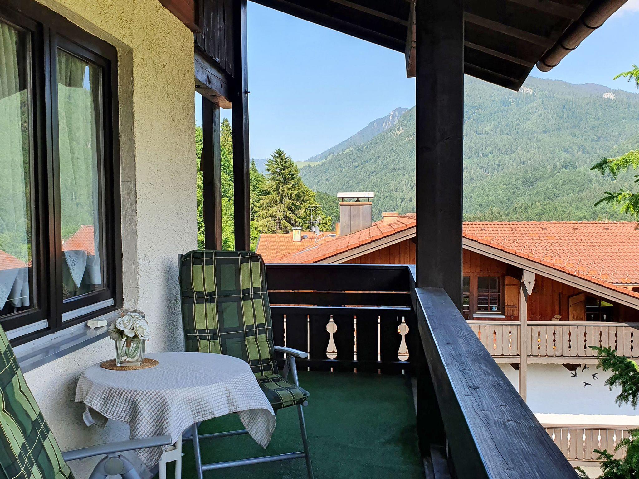 Unsere hübsche kleine Nichtraucher Ferienwohnung verfügt über eine insgesamt gehobene, komplette Ausstattung. Neben einer Diele, einem kleinen separaten Schlafzimmer mit Doppelbett (1,80 x 2,00m), einem Bad und einer kleinen Küche, finden Sie ein gemütlich eingerichtetes Wohnzimmer mit Smart-TV und WLAN vor. Vom großen Balkon über Eck nach Süden und Osten genießen Sie herrlichen Bergblick.