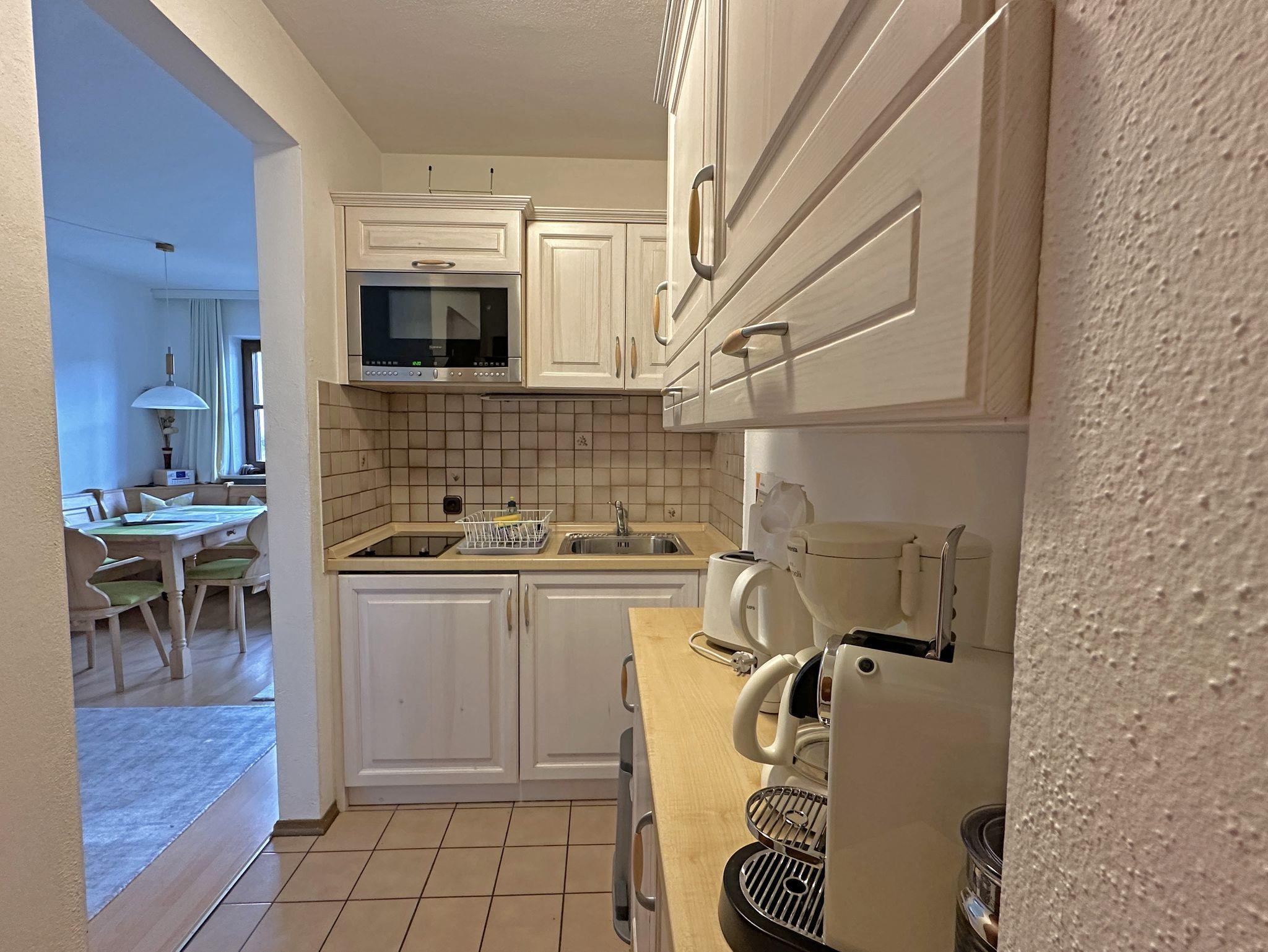 Die separate Küche ist komplett eingerichtet und lässt keine Wünsche offen – vom 2-Platten-Ceran-Kochfeld über Geschirrspüler, Kühlschrank mit Tiefkühlfach, Mikrowelle und Grill bis hin zu Nespresso-Maschine mit Milchaufschäumer, Filterkaffeemaschine, Toaster und Wasserkocher. Hier können Sie nach Lust und Laune kochen und genießen.