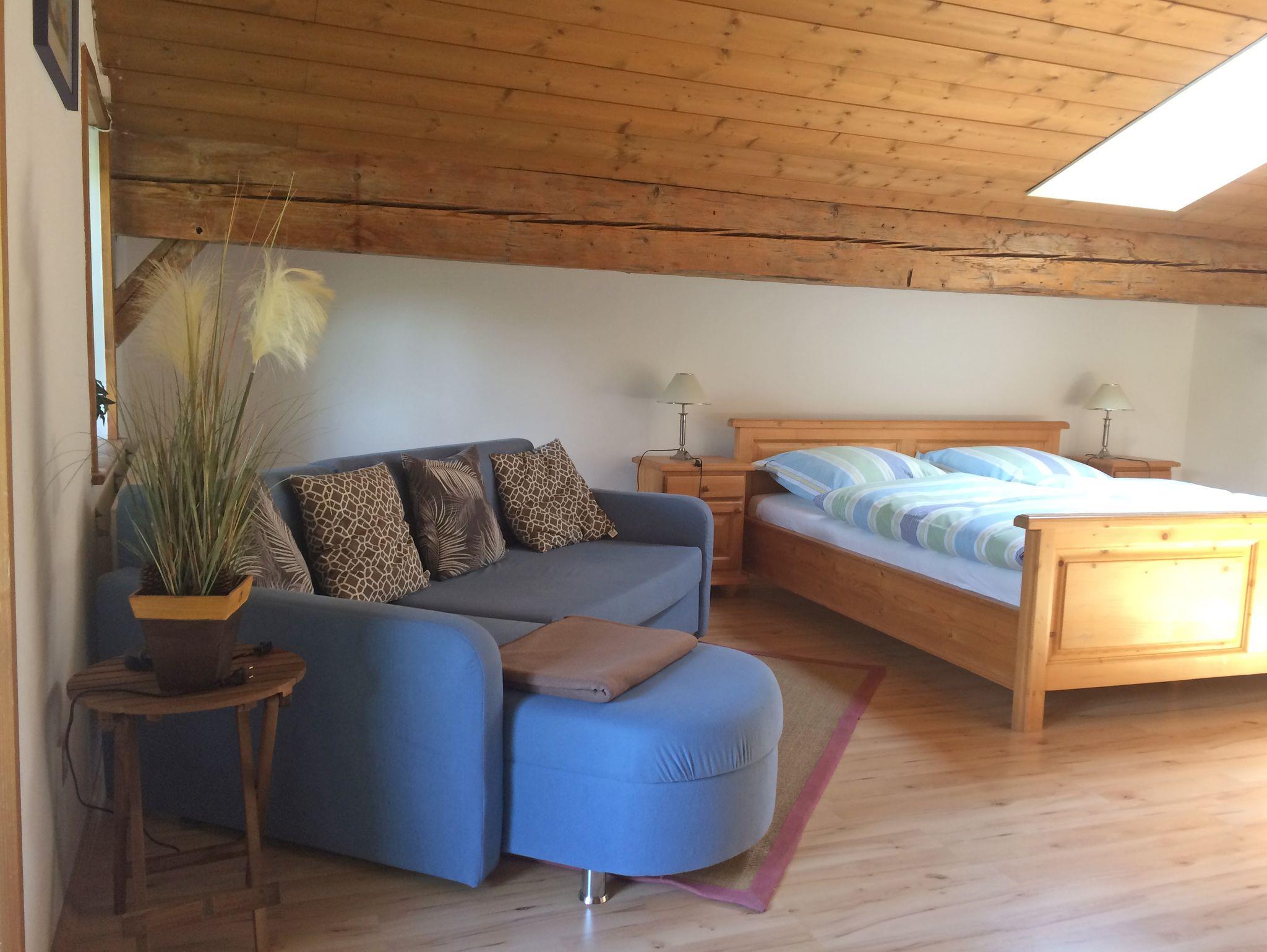 Alpaka-Hof Landinger, Kampenwand Ferienwohnung, 56 qm, ein Schlafzimmer, Wohn-/Schlafzimmer, Balkon