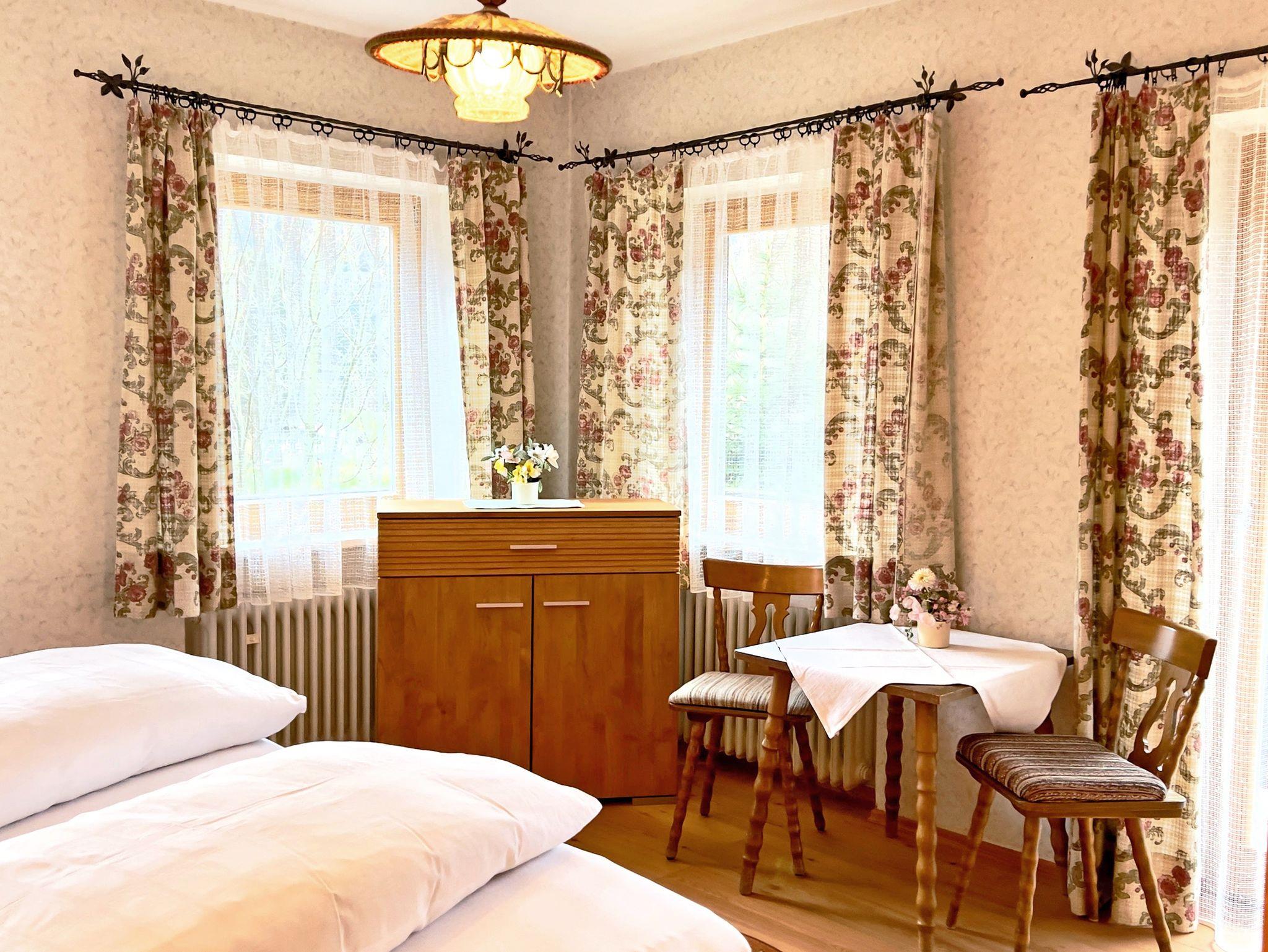 Großes helles Doppelzimmer mit Dusche/WC, Föhn, TV, kostenloses WLAN und Balkon. Herrlicher Blick vom Balkon auf das Zellerhorn und die umliegenden Berge. Ein Hund darf gegen Aufpreis gerne mitgebracht werden. Ihr Frühstück genießen Sie im Frühstücksraum.