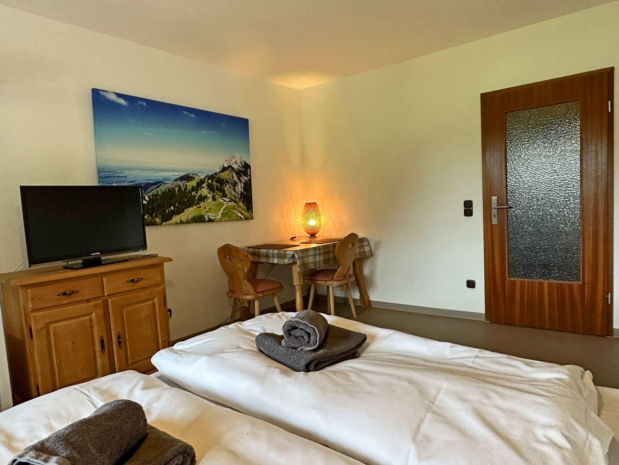 Das gemütliche Einzimmer-Nichtraucher-Appartement „Kampennest“ bietet auf 32 qm modernen Wohnkomfort im stilvollen Alpindesign. Der freundliche Wohnraum ist mit pflegeleichten Vinyl-Bodenfliesen ausgestattet und verfügt über ein bequemes Doppelbett für zwei Personen, eine Essecke mit Tisch und zwei Stühlen sowie einen Flat-Kabel-TV für entspannte Stunden. Die komplett eingerichtete Kochnische mit 2-Platten-Herd ermöglicht die Zubereitung kleiner Mahlzeiten, sodass Sie sich während Ihres Aufenthalts rundum selbst versorgen können. Das Badezimmer bietet eine praktische Kombination aus Dusch- und Badewanne, WC und Fön. Ein besonderes Highlight ist die eigene, möblierte Sonnenterrasse nach Osten, von der aus Sie den herrlichen Bergblick genießen können. Zusätzlich steht Ihnen vor dem Haus eine große Wiese mit Freisitz zur gemeinschaftlichen Nutzung zur Verfügung – perfekt, um den Blick auf die Kampenwand schweifen zu lassen. Bettwäsche und Handtücher sind selbstverständlich vorhanden, sodass Sie unbeschwert anreisen können. Auch Ihr Hund ist gegen Aufpreis herzlich willkommen.