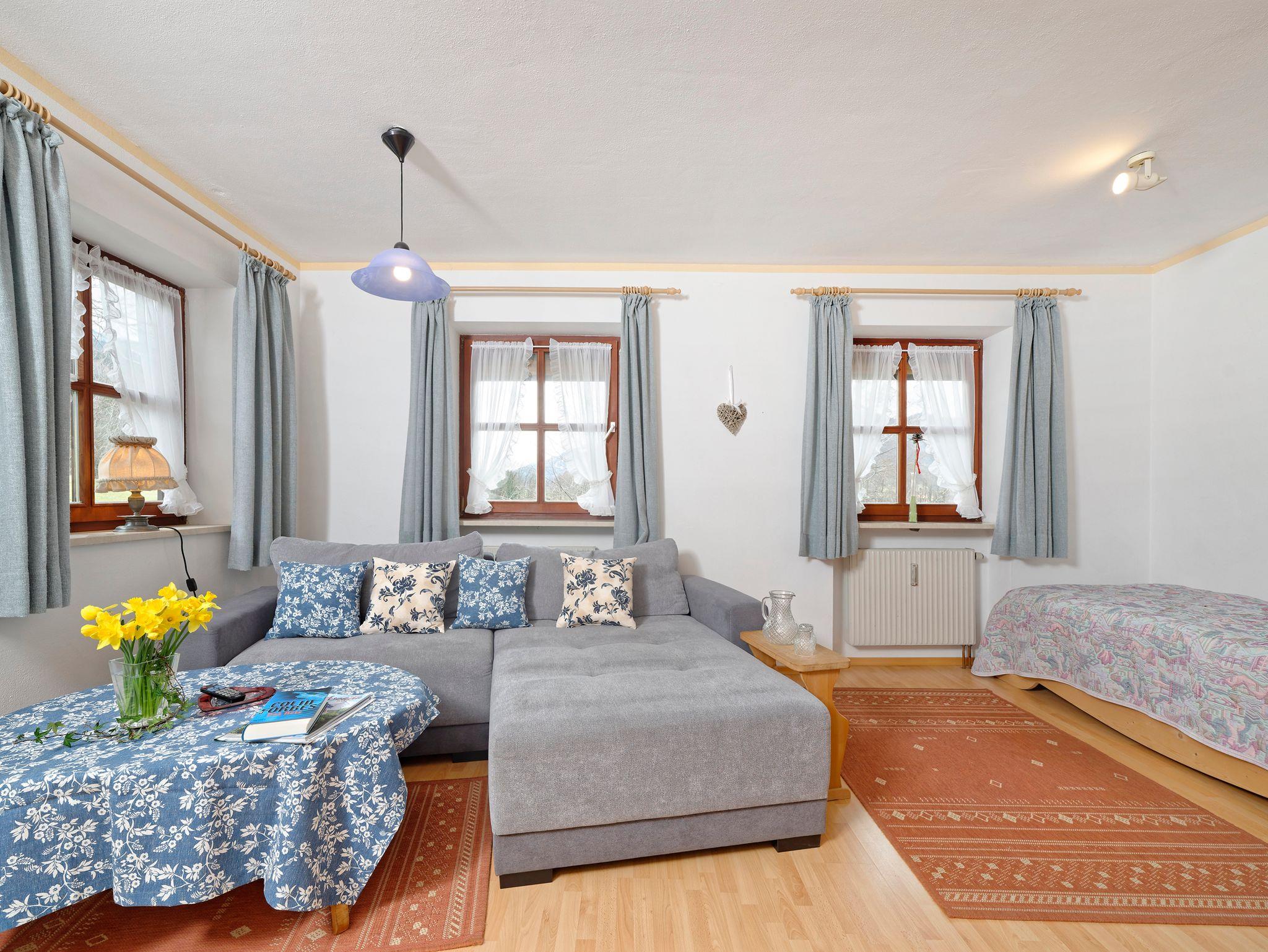 Willkommen in Ihrem gemütlichen Urlaubszuhause! Diese großzügige Nichtraucher-Ferienwohnung im Nebenhaus in der 1. Etage ist ideal für 2 bis 3 Personen und lädt Sie mit ihren 65 m² sowie einem großen sonnigen Süd-Balkon und Ost-Balkon zu unvergesslichen Stunden mit traumhaftem Bergblick und Blick Richtung Aschau im Chiemgau ein – der perfekte Ort, um die Seele baumeln zu lassen. Das gemütliche Schlafzimmer mit Doppelbett (190 x 200 cm) sorgt für erholsame Nächte. Im geräumigen Wohnzimmer erwarten Sie eine bequeme Couchgarnitur, Flachbild-Digital-SAT-TV, Radio und kostenloses WLAN – ideal für entspannte Abende; zusätzlich steht ein Boxbett (90 x 200 cm) für die 3. Person bereit. Die separate Küche ist bestens ausgestattet mit Herd/Backofen, Spülmaschine, Kaffeemaschine, Kühlschrank mit Tiefkühlfach, Mikrowelle, Toaster, Wasserkocher und einer einladenden Essgruppe – alles, was Sie für ein gemütliches Frühstück oder ein entspanntes Essen benötigen. Das moderne Badezimmer mit Dusche, WC und Fön bietet zusätzlichen Komfort. Für längere Aufenthalte stehen im Haus eine Waschmaschine und ein Wäschetrockner gegen Gebühr zur Verfügung. Bettwäsche und Handtücher sind selbstverständlich vorhanden. Bitte beachten Sie, dass aus Rücksicht auf Allergiker keine Hunde oder Haustiere in der Wohnung erlaubt sind. Genießen Sie Ihre wohlverdiente Auszeit in dieser charmanten Ferienwohnung mit herrlichem Ausblick auf die Berge – hier beginnt Ihr Urlaub entspannt und mit einem Lächeln.