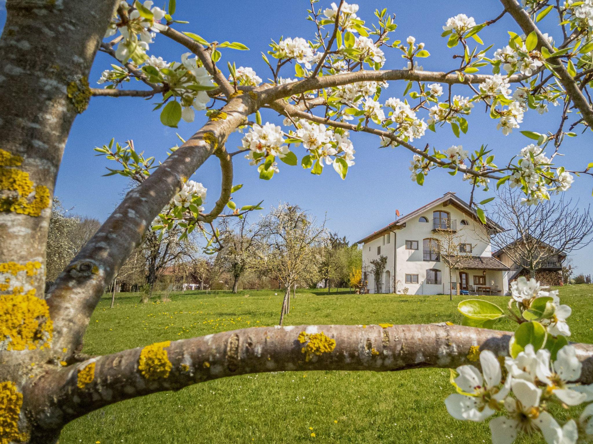 The spacious 3-room holiday flat 'Im Obstgarten' is, as the name suggests, in the middle of an orchard with over 100 fruit trees, some of them old, on the outskirts of the village of Lorenzenberg near Aßling in the district of Ebersberg.