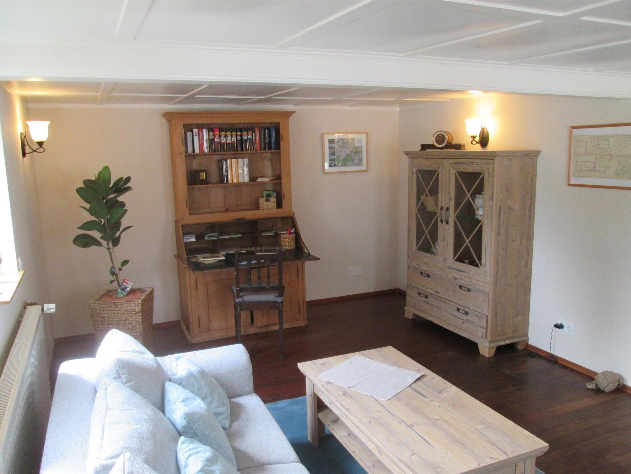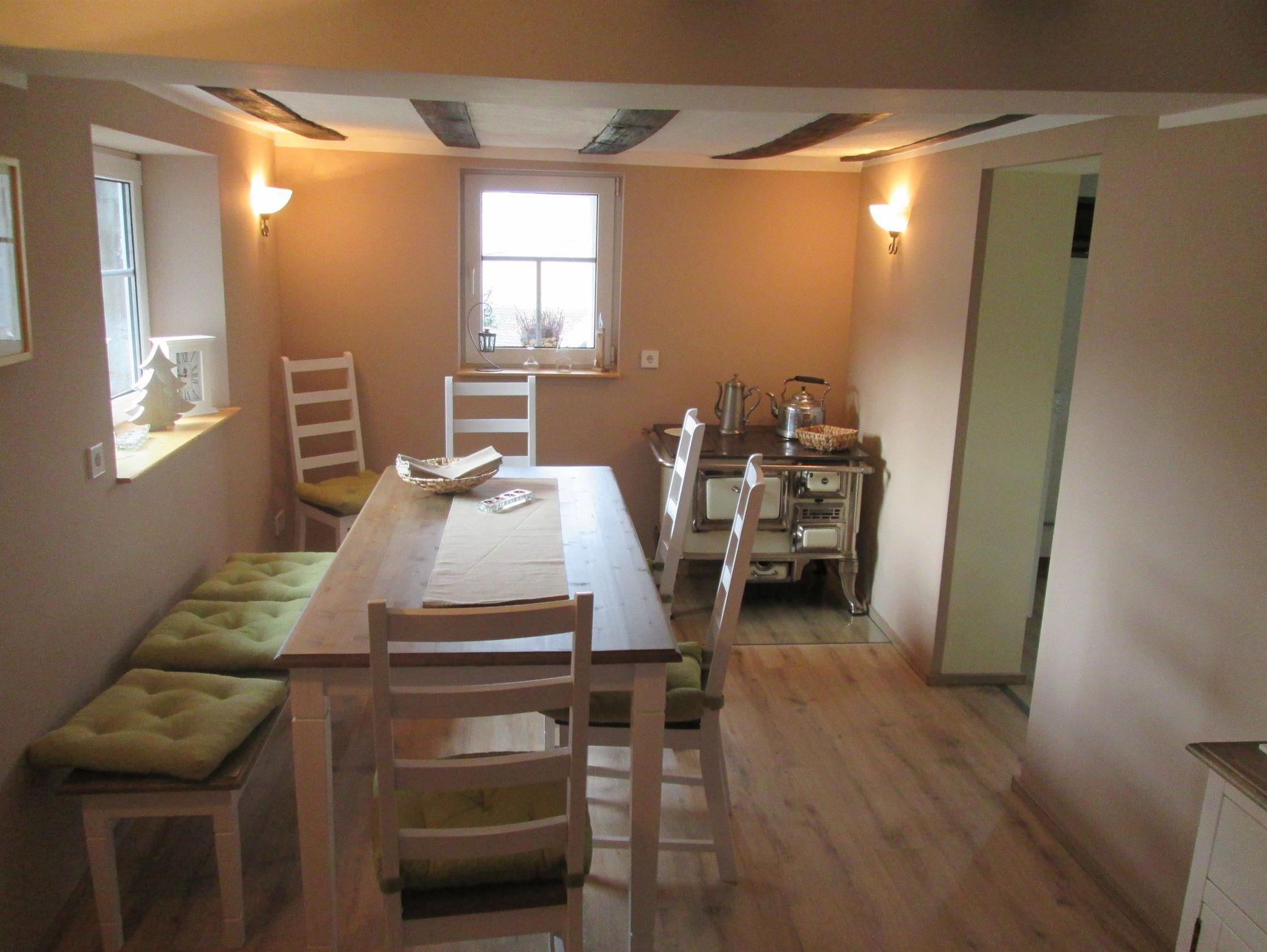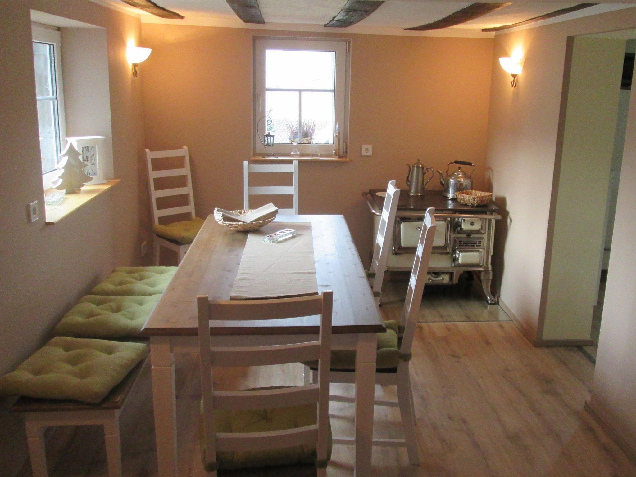 Im Erdgeschoss liegt die gut ausgestattete Küche (Spülmaschine, Kaffeemaschine, Backofen, Toaster, etc.) mit Zugang zur Terrasse, sowie das Esszimmer. Das großzügige, gemütliche Wohnzimmer (Sat-TV) bietet zusätzlich noch eine Schlafmöglichkeit für 2 Personen (Schlafsofa). Im Innenhof des Anwesens steht zusätzlich noch eine Sitzmöglichkeit zur Verfügung, hier können auch max. 2 PKW abgestellt werden.