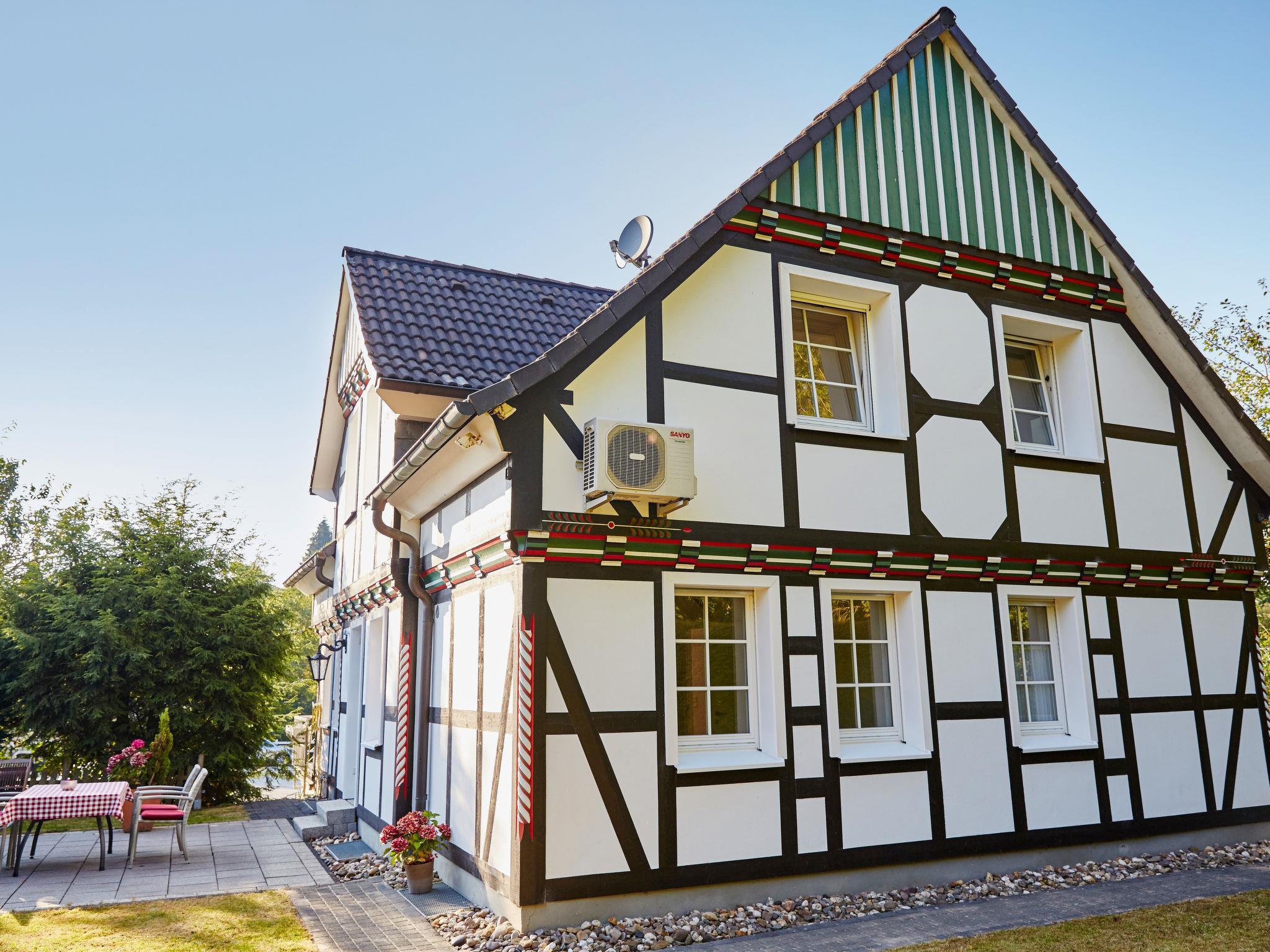 Luxurious single-family house "Am Golf- und Reitpark". In the district of Niederhelden 9.6 km from the centre of Attendorn, in a quiet position on a slope, 100 m from the edge of the forest, 10 km from the lake, 50 m from the stream, on the golf course. Private: well-kept garden 40 m2 with lawn and wildlife garden. In the house: central heating system. Breakfast and half board possible on request (extra). Stepped path (20 steps) to the house. Parking (for 3 cars) at the house, single garage (extra) at the house. Shop 800 m, grocery, supermarket 6 km, shopping centre 6 km, restaurant 100 m, bakery 800 m, café, bus stop 200 m, railway station "Finnentrop" 9 km, indoor swimming pool, bathing lake "Biggesee" 10 km. Golf course (18 hole) 100 m, tennis 1 km, riding stable 50 m, walking paths from the house 100 m. Nearby attractions: Attahöhle 8 km, Karl-May-Festspiele 10 km, Sankt-Sebastianus-Kapelle. Please note: car recommended. Riding lessons (school horses / ponies) and / or guest boxes can be reserved for your own horses (extra) in a 50m far riding stable. The use of the indoor pool and wellness area as well as breakfast and half board are in the «Romantikhotel Platte» 100m away possible for a fee. Very close to the house, the 18-hole course at the Repetal golf club (extra) with 95 ha makes a challenge for all HCP classes.
