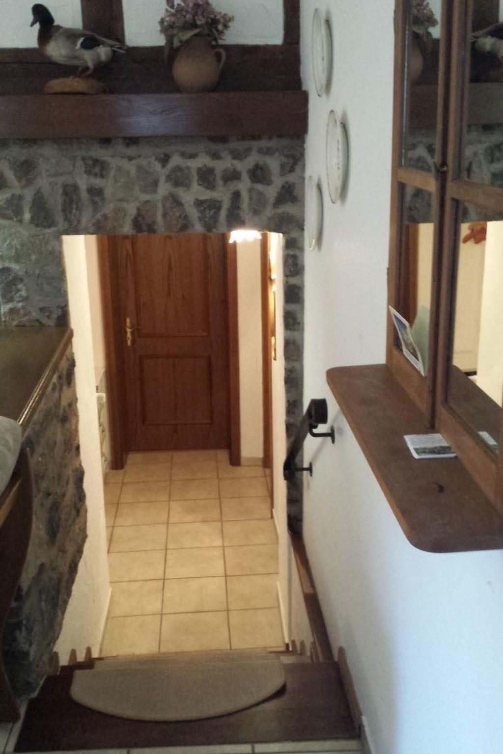 The holiday home Wepler has a bedroom, dining room, living room, kitchen, bathroom and a storage room. The rooms are spread over 2 levels (height difference 3 steps) and you can choose between 2 terraces, one of which is covered. Here you can enjoy a wonderful breakfast or barbecue in summer. The large, well-kept garden is laid out like a park with various oases of peace, a garden pond and plenty of space to run around. As the property is completely fenced in, it is ideal for dogs. Located on the outskirts of the village: meadows and fields begin directly behind the garden. The holiday flat is located in Mücke OT Bernsfeld at the foot of the Vogelsberg. Central location in the middle of Hesse on the A5, Kassel and is therefore very suitable not only for holiday guests but also for working people. - Frankfurt. Mücke Bernsfeld has about 400 inhabitants. There is a bakery, an agricultural self-marketer for bread and sausage products, a car repair shop, a petrol station and 2 restaurants. In the neighbouring village, approx. 4 km away, there is a newly renovated indoor swimming pool with a huge sauna and wellness area ("Aquariohm"). The Hoherodskopf, a well-known ski and recreation area in the Vogelsberg, is approx. 35 km away. Various leisure activities are offered there both in summer (summer toboggan run, climbing forest, cycle paths) and in winter (ski and toboggan run with lifts). The nearby towns of Grünberg, Alsfeld and Laubach invite you to stroll through their beautiful old town centres. Distance to the larger towns of Gießen and Marburg approx. 25 - 30 km.