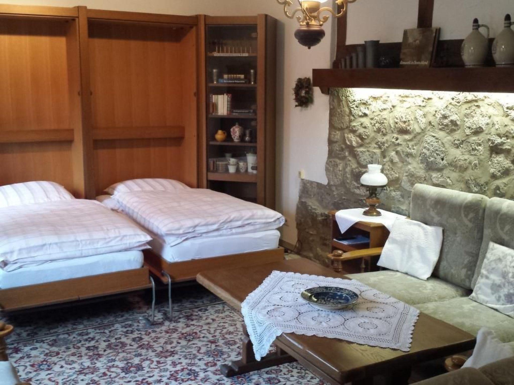 Brief description: Non-smoking house. Brief description: Kitchen, bathroom, living room and storeroom. Living room equipment : TV. Bedroom equipment : wardrobe, shelves. Bathroom equipment : Washing machine. Surroundings, rental possibilities : bike hire, sports possibilities in the surroundings : mountain biking, cycling tours in the surroundings. Location description : Mücke Bernsfeld has about 400 inhabitants. Garden and outdoor facilities, garden equipment : garden furniture available, barbecue.