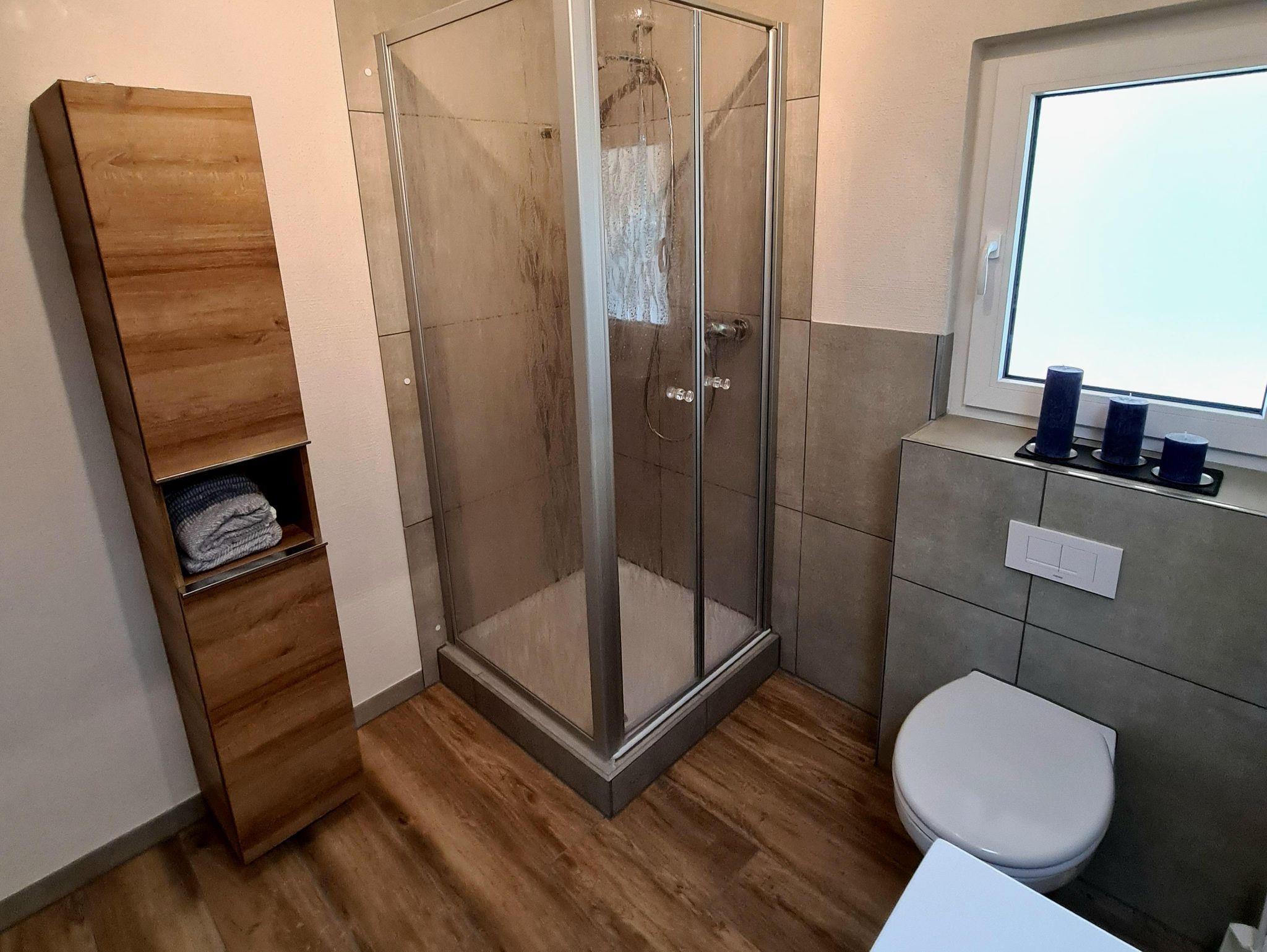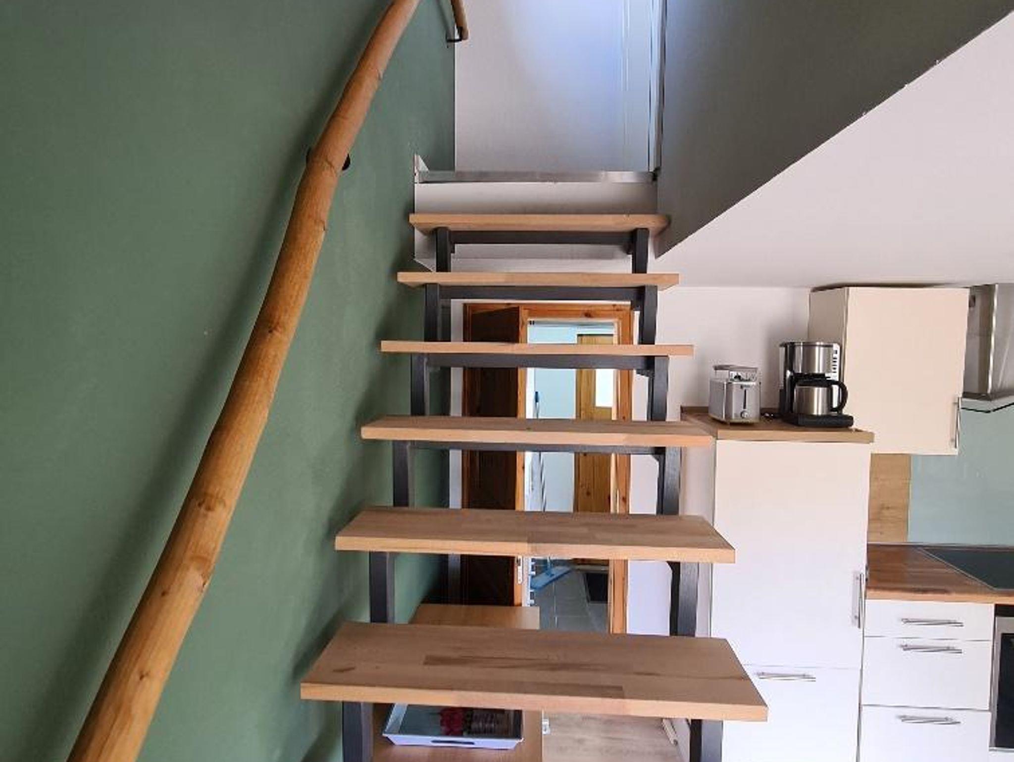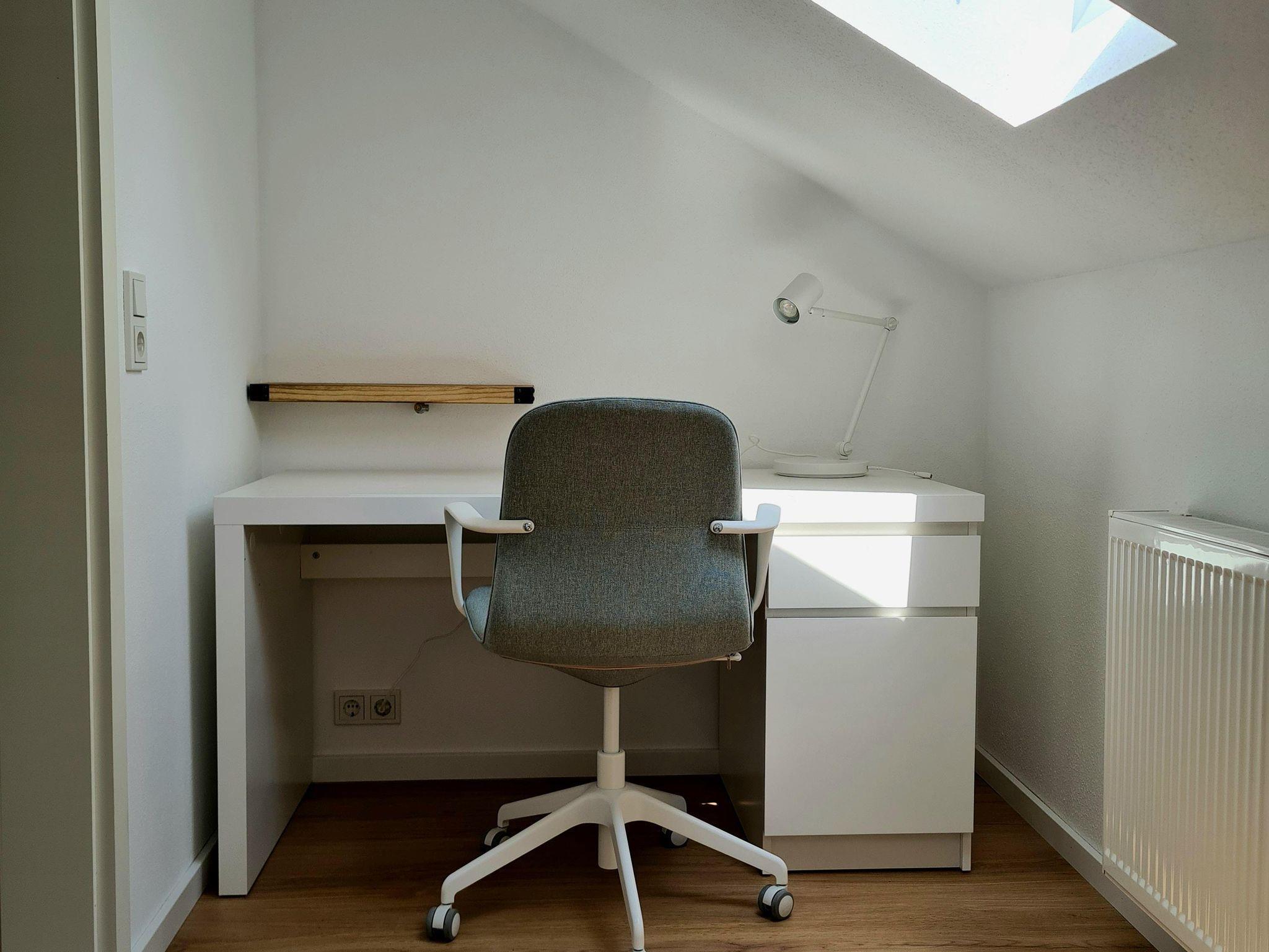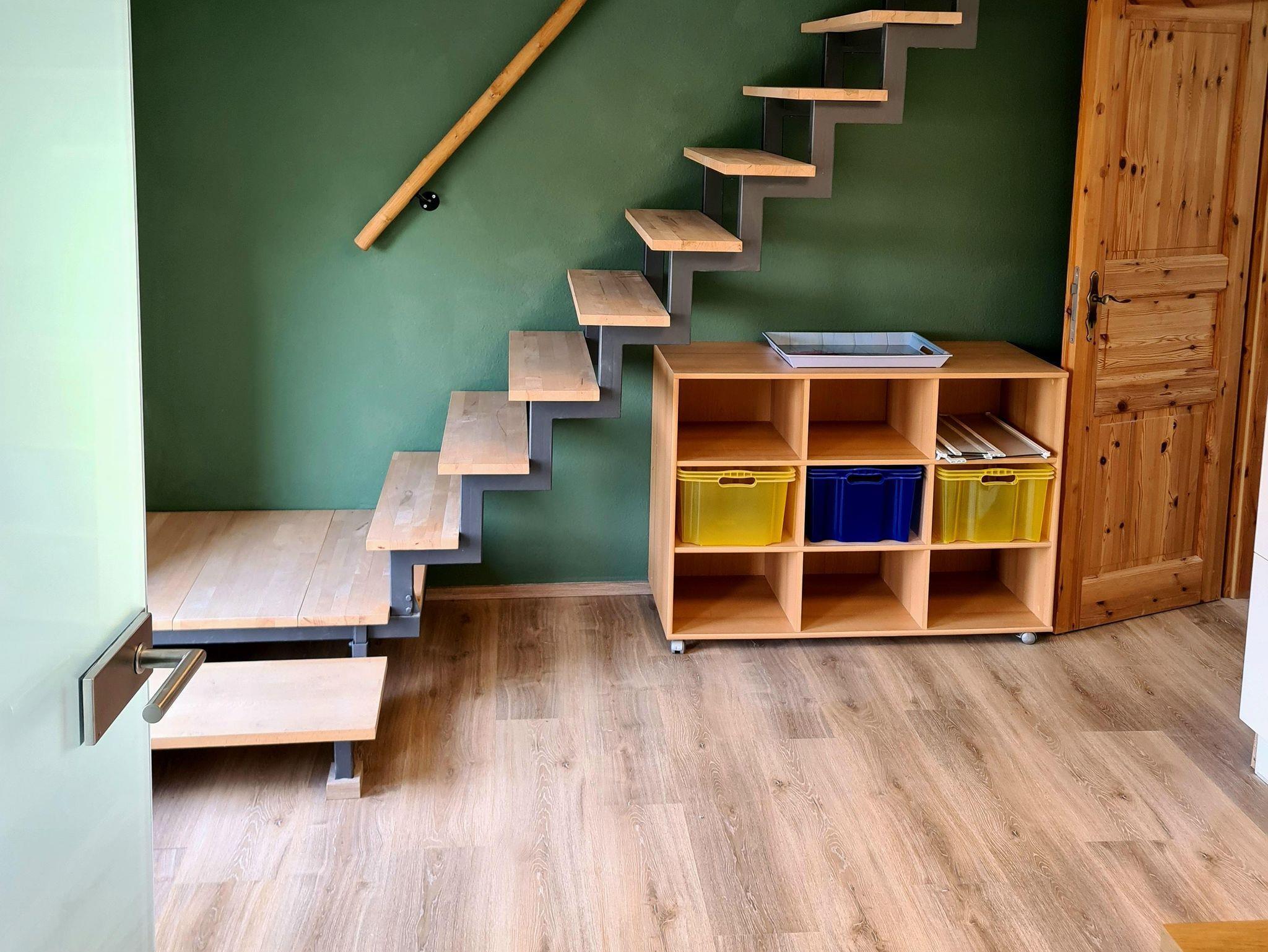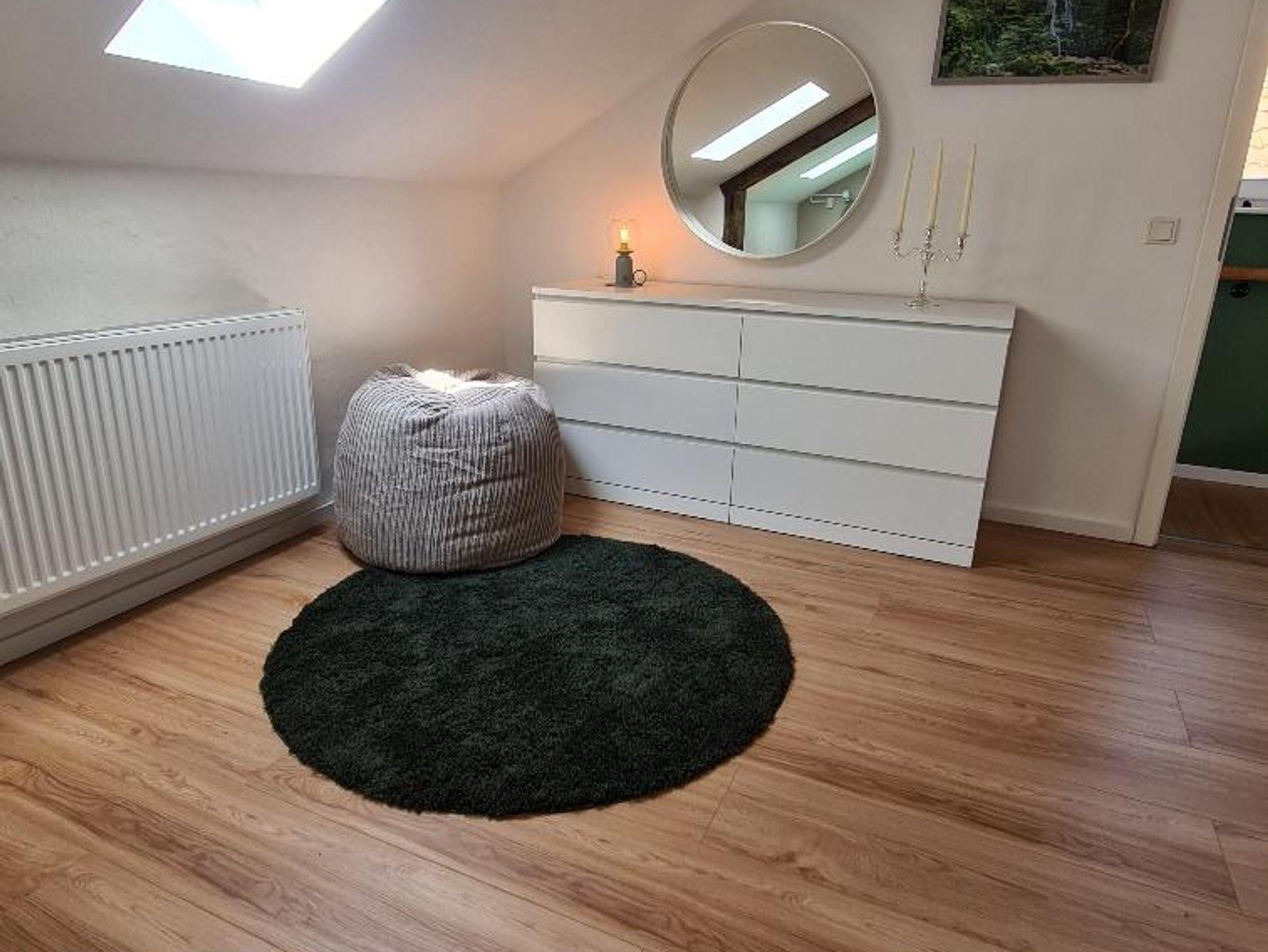 - im Obergeschoss über einen Vorraum zum Entspannen, einem Doppelschlafzimmer, einem Einzelschlafzimmer (Bett ausziehbar zum Doppelbett) sowie einem Zimmer zum Arbeiten (Schreibtisch) bzw. einer Schlafcouch für Übernachtungsgäste