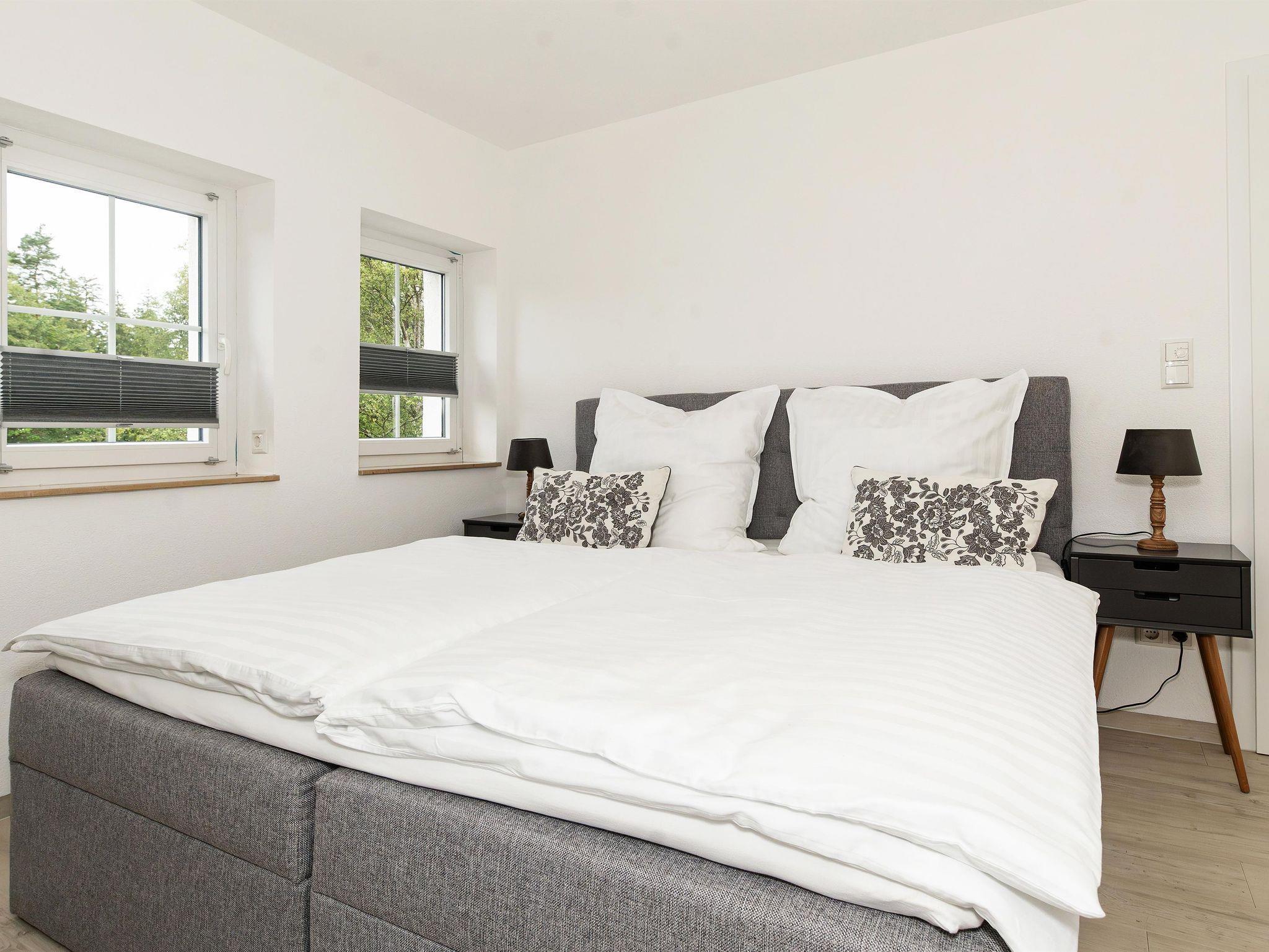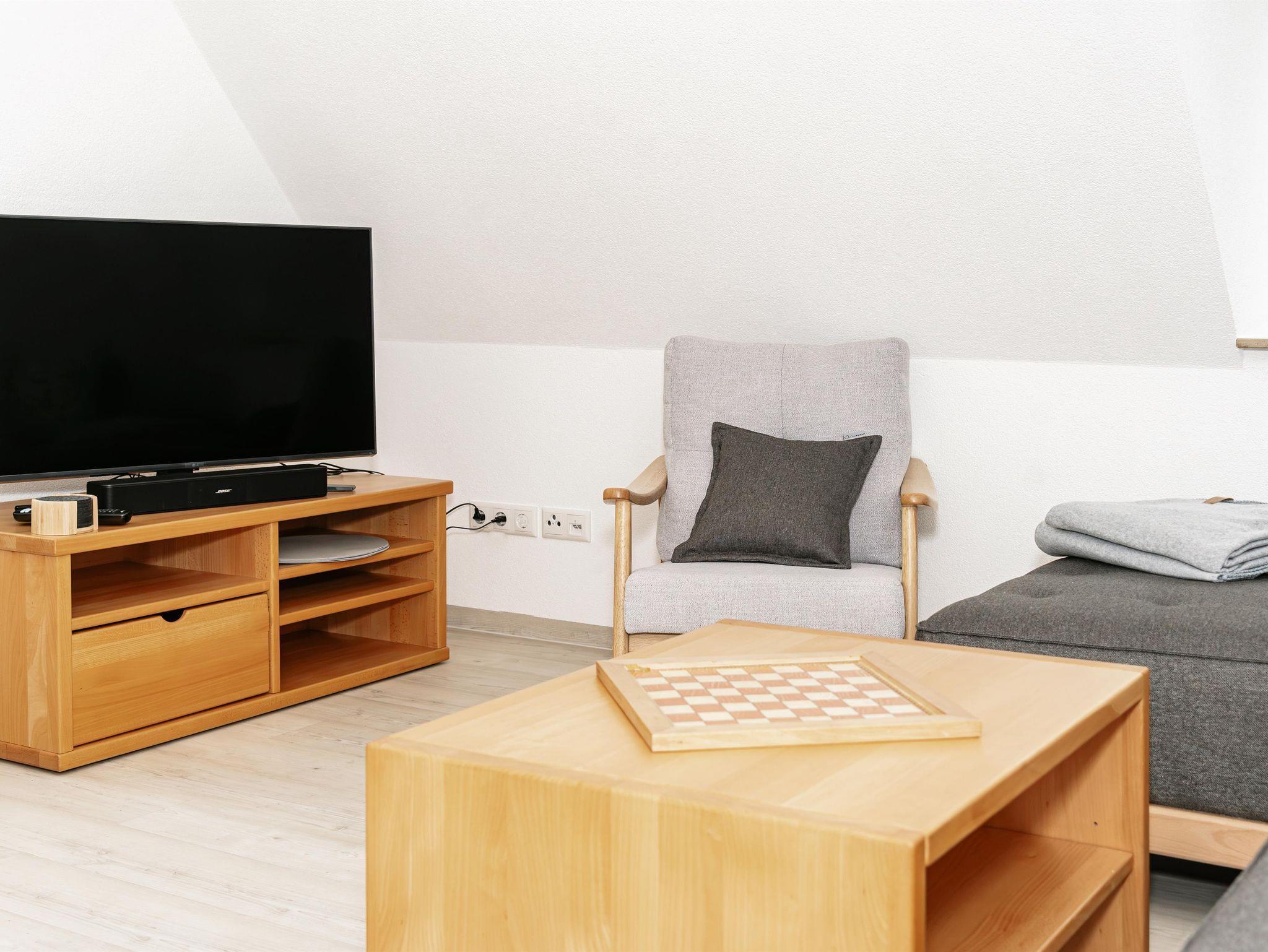 Die Ferienwohnung Wipfelglück befindet sich in der 2. Etage der Quelle. Entspannen Sie inmitten der Baumkronen und genießen Sie das beruhigende Zwitschern der Vögel in nächster Nähe. In der Küche wird es Ihnen dank Backofen, Mikrowelle, Geschirrspüler etc. leicht gemacht, ein leckeres Essen zu zaubern. TV+Soundbar und Spiele laden zu gemütlichen Abenden ein. Buchen Sie für bis zu 4 Personen stehen Ihnen zwei Schlafräume (1x Doppelbett 180x200 und 1x 2 Einzelbetten 90x200) zur Verfügung. Eines der Zimmer ist mit einem Stapelbett ausgestattet, was es geräumig macht oder so, dass hier bequem 2 Kinder ihr Bett beziehen können (ggf. auch mit Kinderreisebett). Ab 5 Personen erhalten Sie Zugang zu einem weiteren, separaten Schlafzimmer (Doppelbett 180x200) mit TV auf gleicher Etage, jedoch außerhalb der Wohnungseingangstür. Das Bad ist so gut wie möglich barrierefrei, mit großer ebenerdiger Dusche und Wanne. Bei Bedarf können am WC Haltegriffe angebracht werden. Frischluft tanken Sie in unserem Außenbereich mit Terasse und Grill.