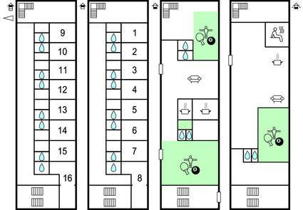 Badeværelse (nr. 16) - WC. Varmt og koldt vand. Bruser