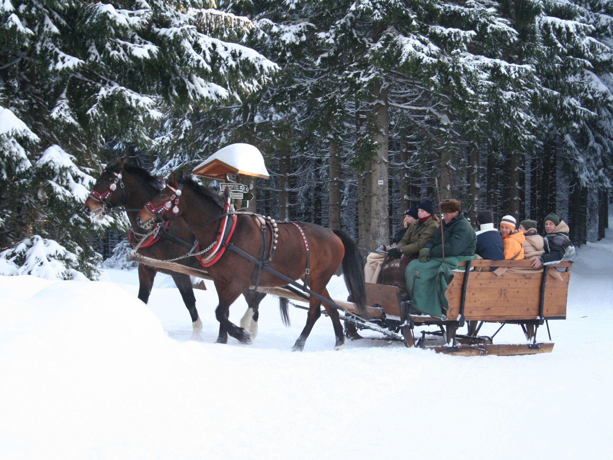 Winter in the Vogtland has a very special charm. Snow-covered forests, 50 km of cross-country ski trails in the immediate vicinity, alpine slopes with lifts and floodlights as well as horse-drawn sleigh rides and in the evening a hot punch by the fireplace or a visit to our wonderful panoramic sauna will make your holiday unforgettable.