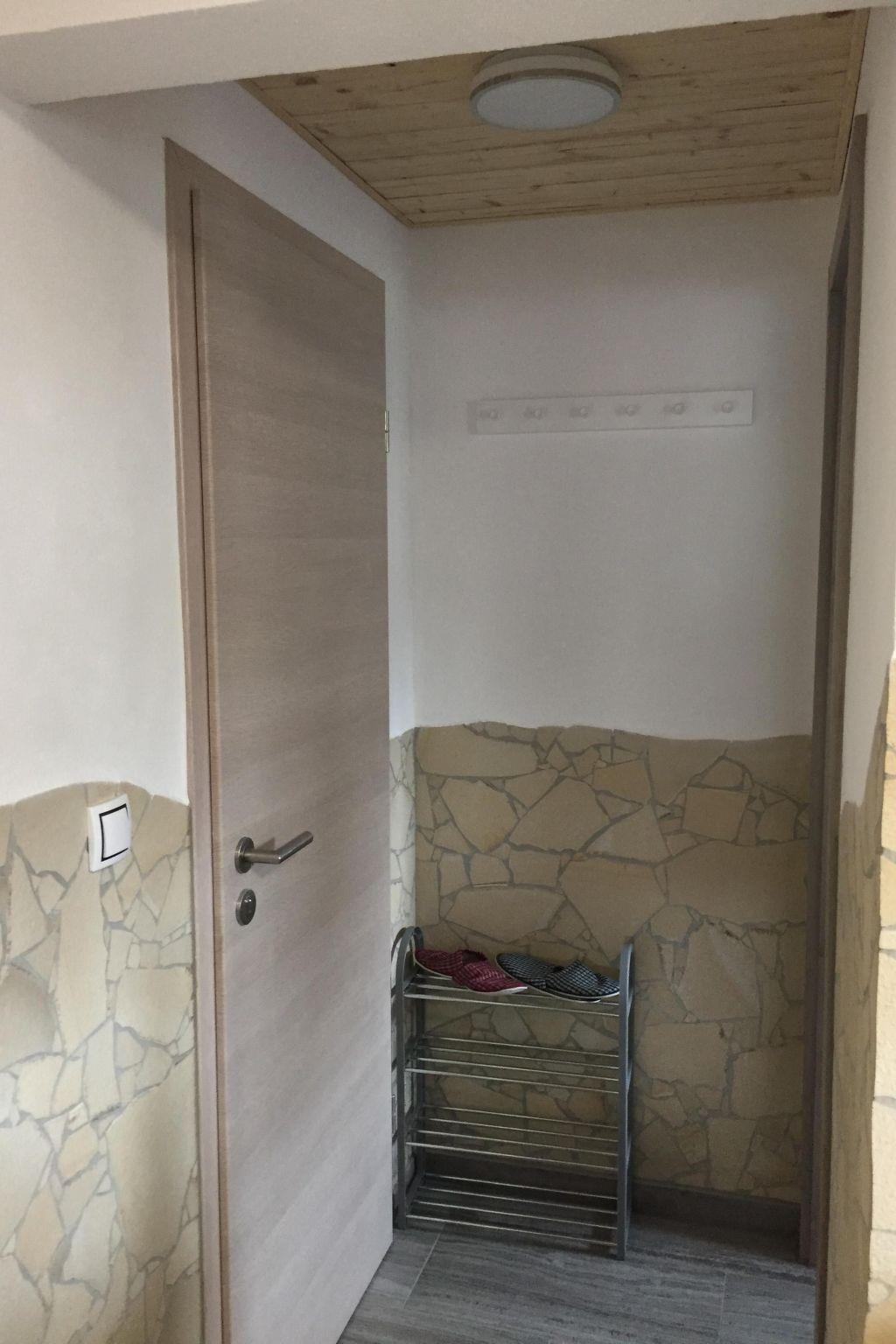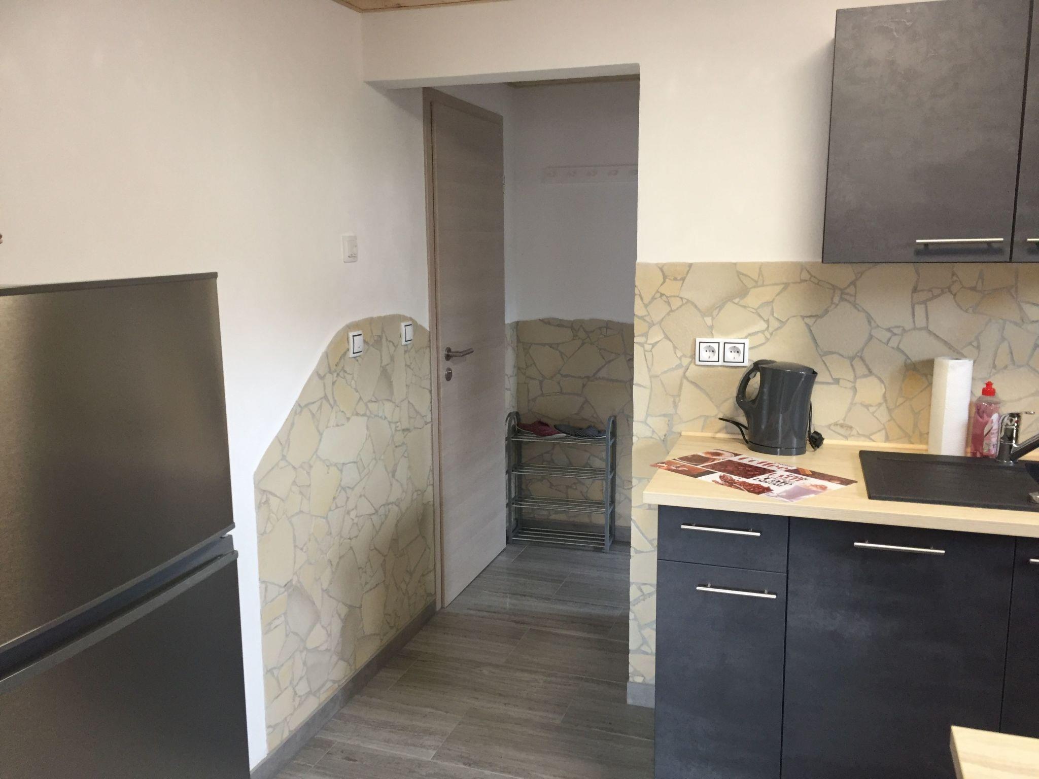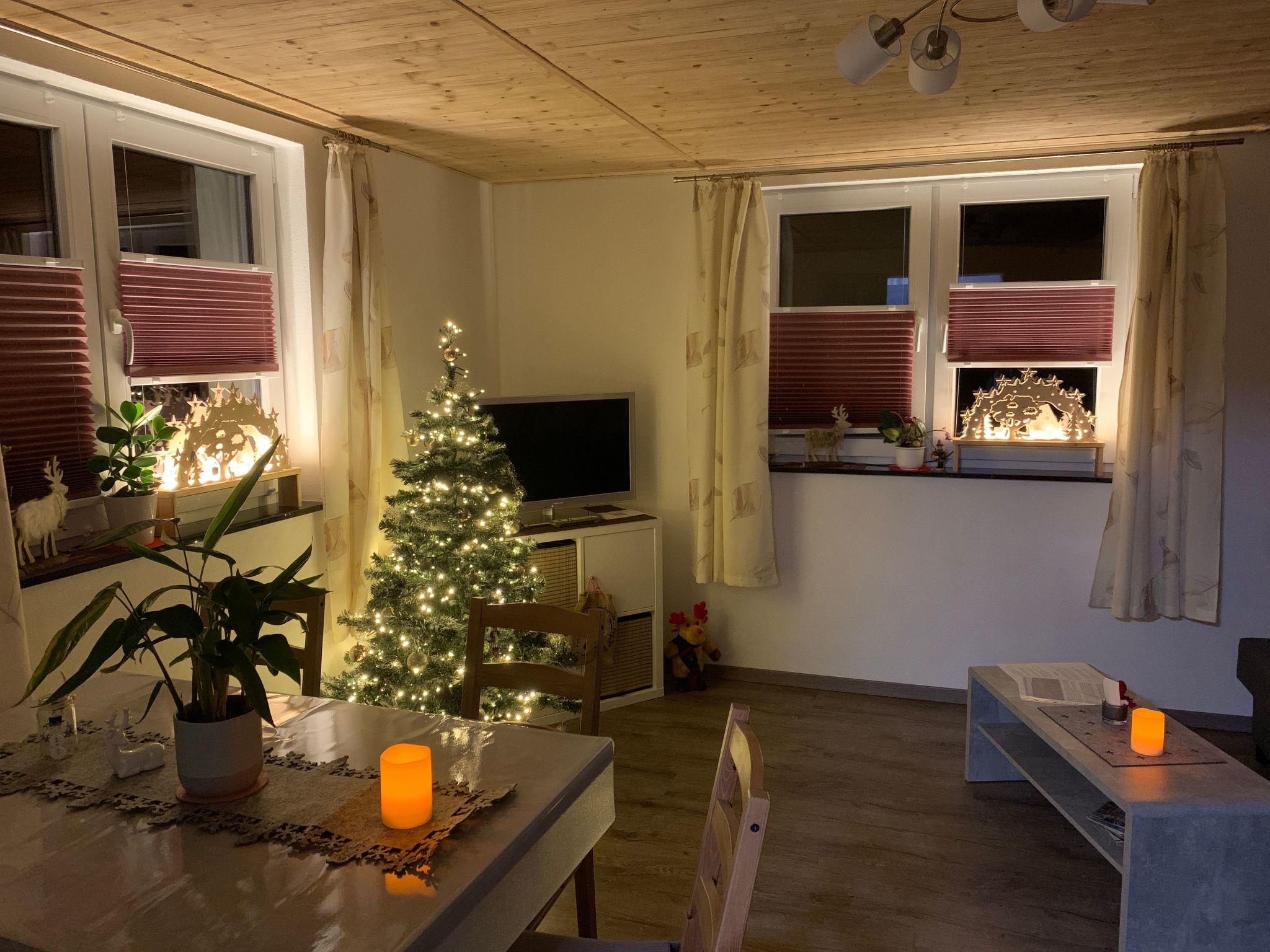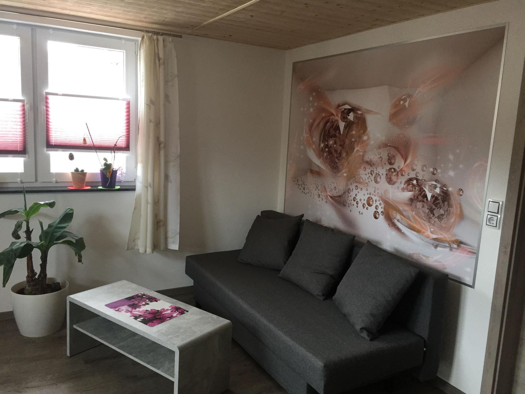 The holiday flat is at ground level, only 2 steps in front of the front door have to be mastered. You then enter a shared vestibule (used by the landlord and tenant) before entering the holiday flat with a separate lockable entrance. This means that you have the flat on the ground floor all to yourself. As landlords, we live on the upper floor. Sometimes you may be greeted by our cat or our little dog, and in our holiday flat you will find a kitchen, a living room with dining table, a bedroom and a bathroom with bathtub. In the bedroom there is also enough space for a baby travel cot.windows and doors should always be closed when leaving the flat.a large double bed in the bedroom for 2 adults and a sofa bed in the living room, this has a lying surface of bed size (width): 130 cm Bed size (length): 191 cm.Possibly too narrow for 2 adults but ideal for 2 children or one adult. A high chair and seat attachment (toddler) for the toilet available.