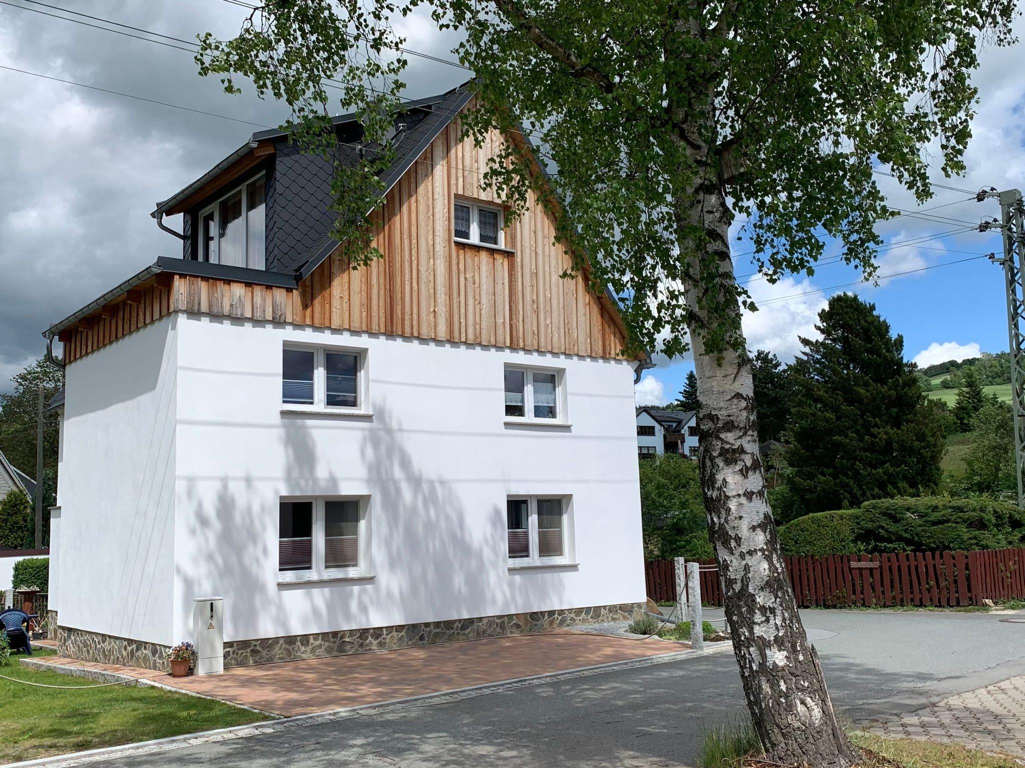 Our beautiful holiday flat is located in the heart of the Waldhufendorf Königswalde. The house was built in 1747 and we acquired it in 2010. With a lot of love and ambition we have fully renovated it until 2021. The holiday flat was completed in the same year and is looking forward to every visit! It is centrally located in Königswalde, so you can easily reach many places on foot, such as our Penny, a hairdresser, several bakers, a church, a doctor, the stationery shop "Bergelt" as well as a playground and a savings bank machine. The hospital and pharmacy are about 8 km away in Annaberg-Buchholz, and the village of Königswalde is located right next to Annaberg-Buchholz and close to the Czech Republic. 25 km away you will find the Fichtelberg with its beautiful ski slopes and hiking trails.