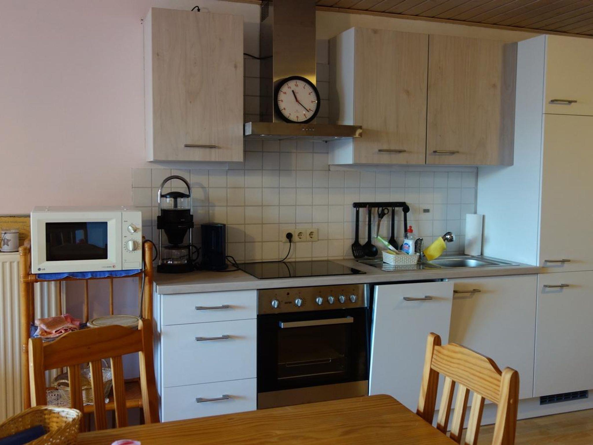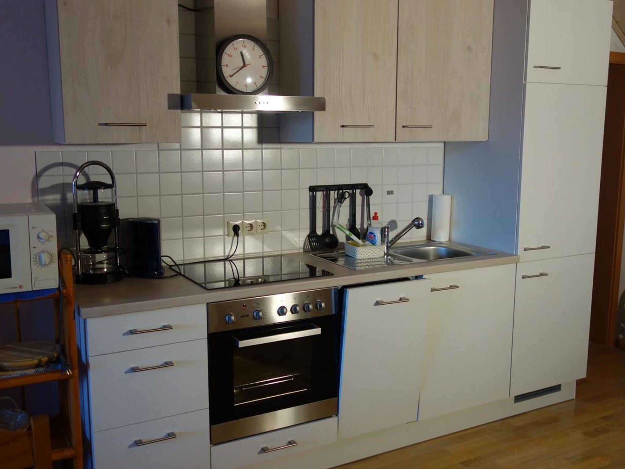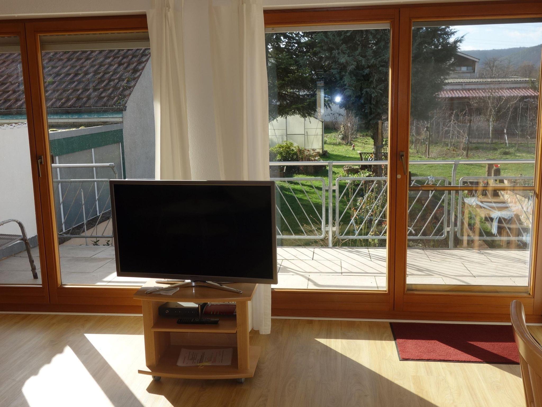 2 Zimmer Wohnung - Chardonnay - 80 qm - bis 3 Personen - Nichtraucherwohnung -Terrasse möbiliert - Südwestseite, Blick auf Obst- und Hühnergarten - W-Lan inkl., Wohnung bestehend aus 1 Schlafzimmer, Wohnraum mit integrierter Küche und Essplatz - 1 Bad mit Dusche, WC