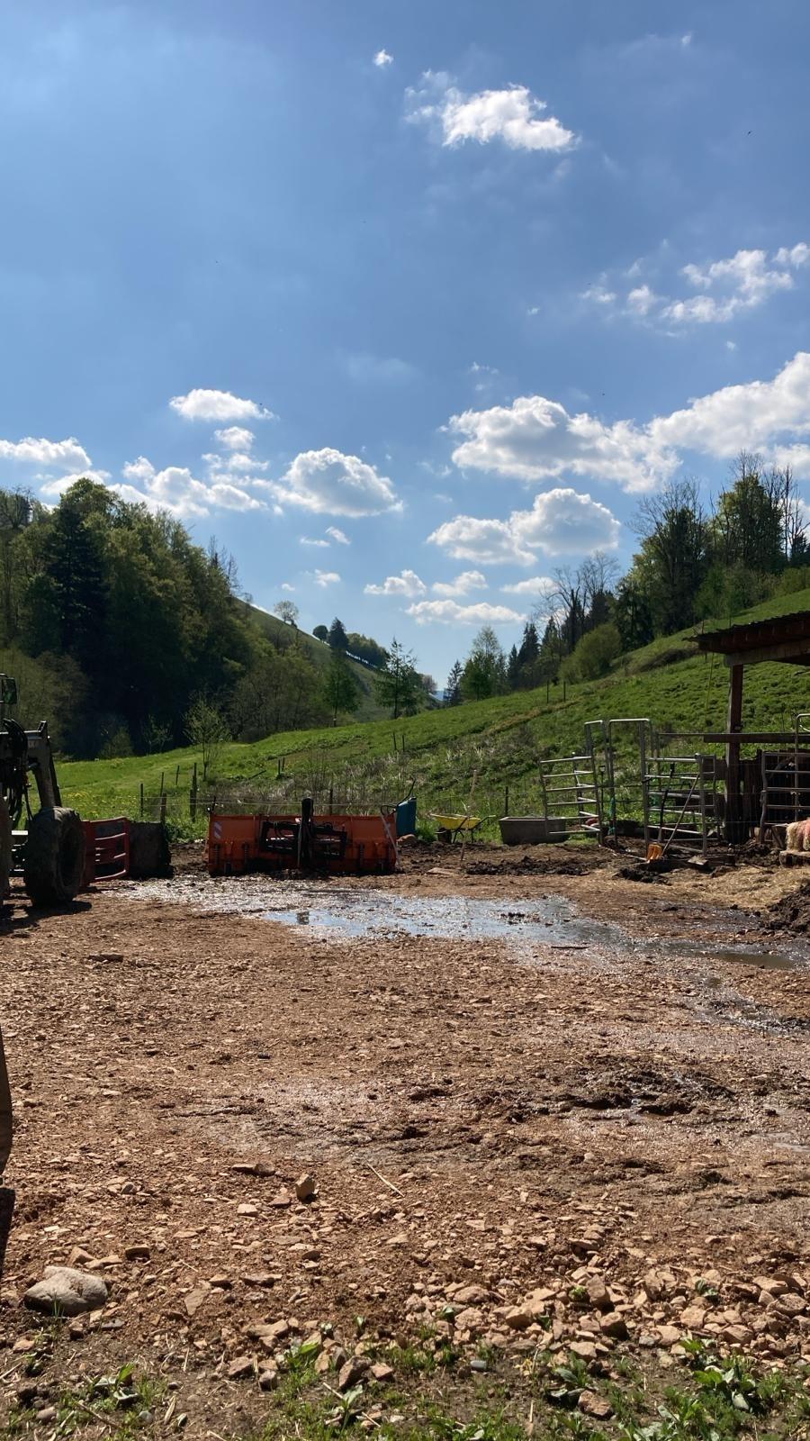 Der Eingang der Wohnung befindet sich direkt neben dem Jungviehstall. Morgens können somit gleich junge Kühe und Kälber begrüßt werden.