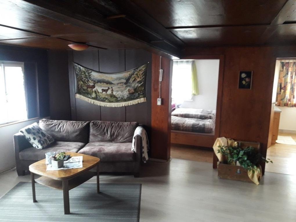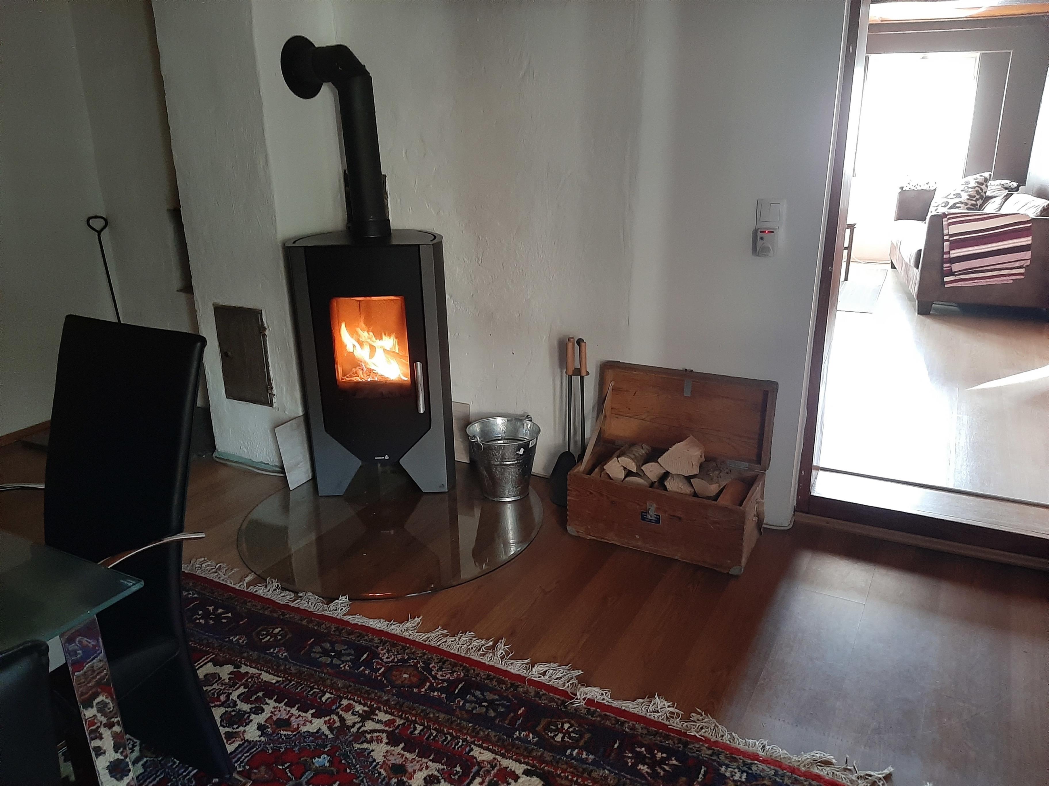 Die Ferienwohnung verfügt über ein Bad mit WC und Dusche , einem Wohnzimmer mit Typischem Ofen mit Gunst die nach einer Winterwanderung oder Skitour zum Aufwärmen einlädt , einem geräumigen Schlafzimmer und einer großzügigen Küche in der ein Schwedenofen steht mit dem zusätzlich Geheizt werden kann.