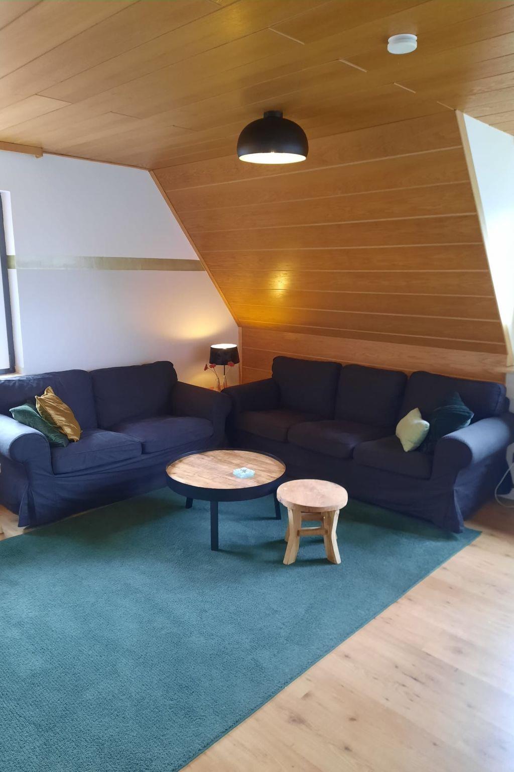Our house has on the second floor (96 M2) 6 rooms including 3 bedrooms and is ideal is 6 persons( or less). There are sleeping places for 8 people, but this is not ideal as toilet and shower are in the same room.