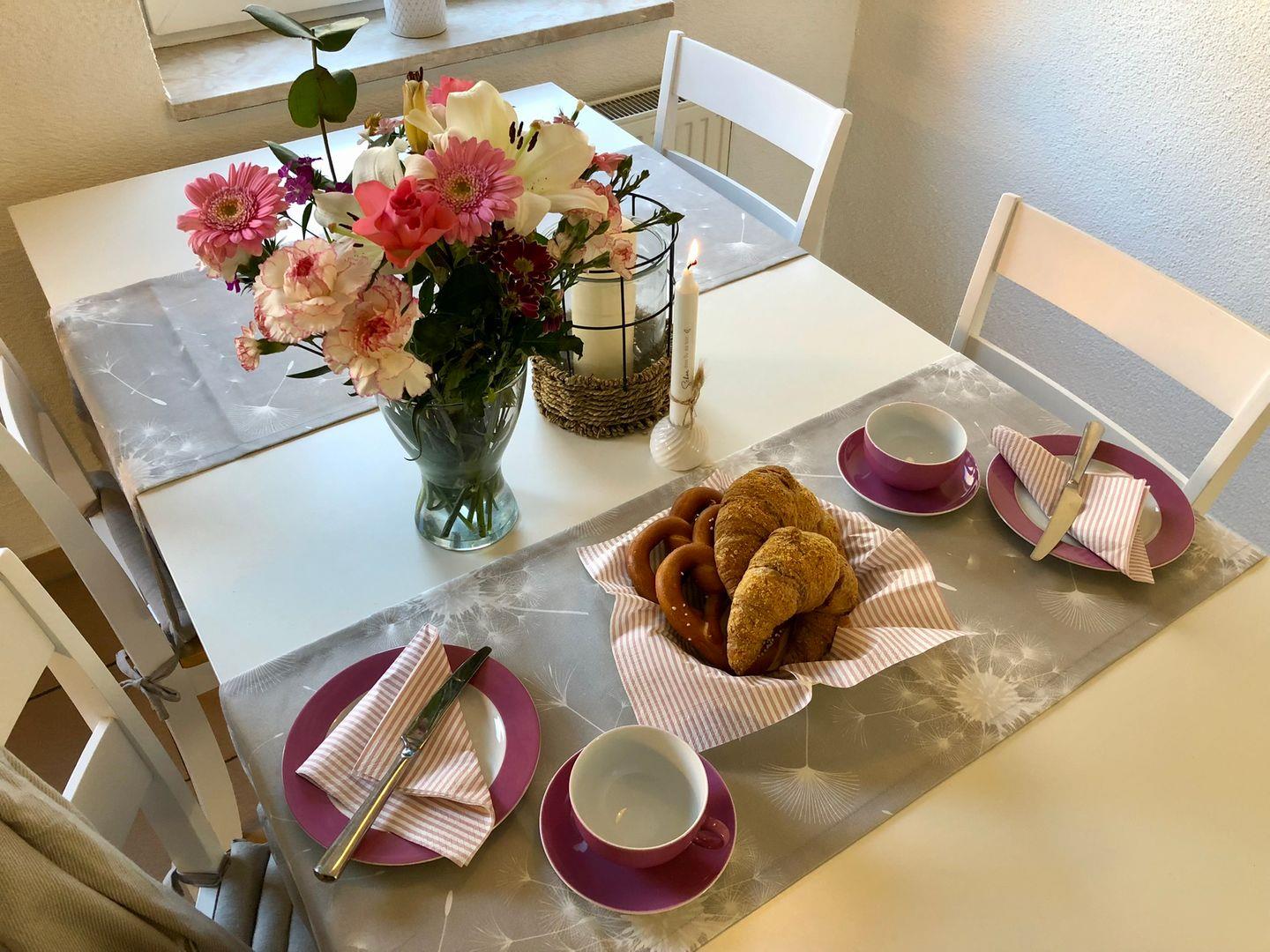 Zwei Schlafzimmer bieten genügend Platz für bis zu vier Personen. Beide Schlafzimmer verfügen über ein Doppelbett. Bettwäsche und Handtücher sind nicht im Preis inbegriffen - können aber auf Wunsch kostenpflichtig hinzugebucht werden. Das Duschbad ist hell und praktisch. Im Hauswirtschaftsraum stehen Waschmaschine und Trockner kostenfrei bereit, was besonders bei längeren Aufenthalten oder Urlaub mit Kindern sehr angenehm ist. Für kleine Kinder haben wir eine kleine Auswahl von Kinderbüchern und Spielsachen in der Wohnung. Ein Hochstuhl und Kinderreisebett können kostenfrei hinzugebucht werden.
