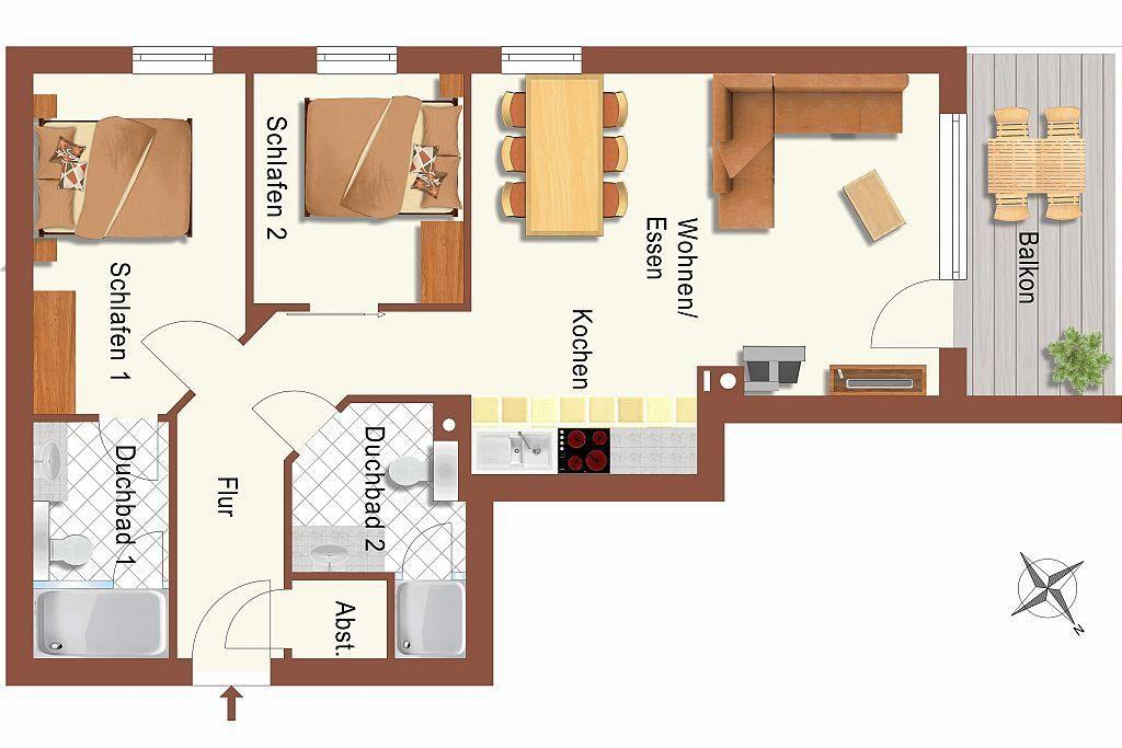 3 Zi | Kü | 2 Duschbäder | Balkon | WLAN | TG-Stellplatz