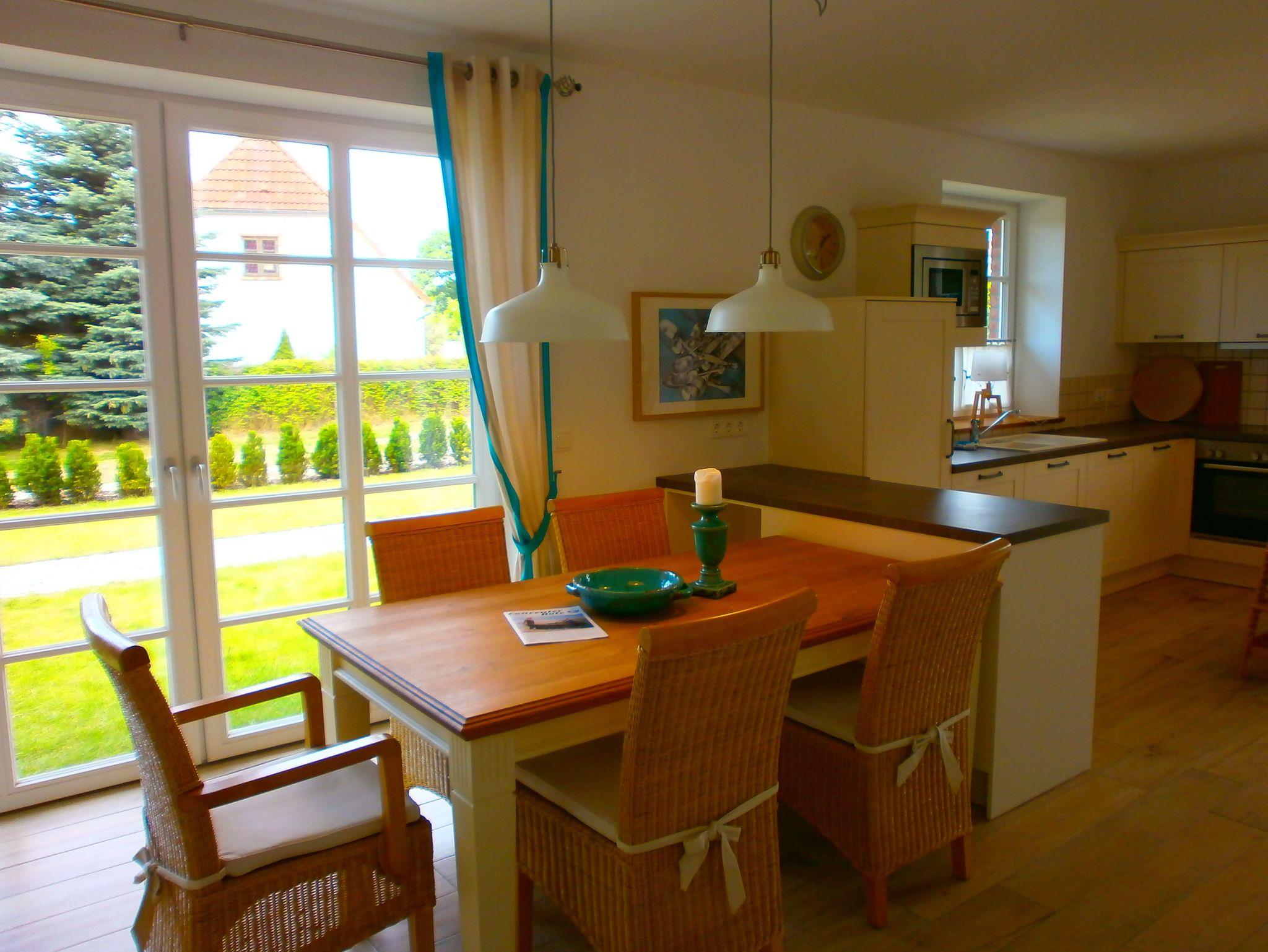 Im Erdgeschoss erwartet Sie ein stilvoller Wohn- und Essbereich mit ausziehbarer Schlafcouch, Kamin und Flachbild-Sat-TV. Die moderne, voll ausgestattete Küche umfasst Spülmaschine, Cerankochfeld, Backofen, Mikrowelle sowie Kaffee- und weitere Küchenmaschinen.